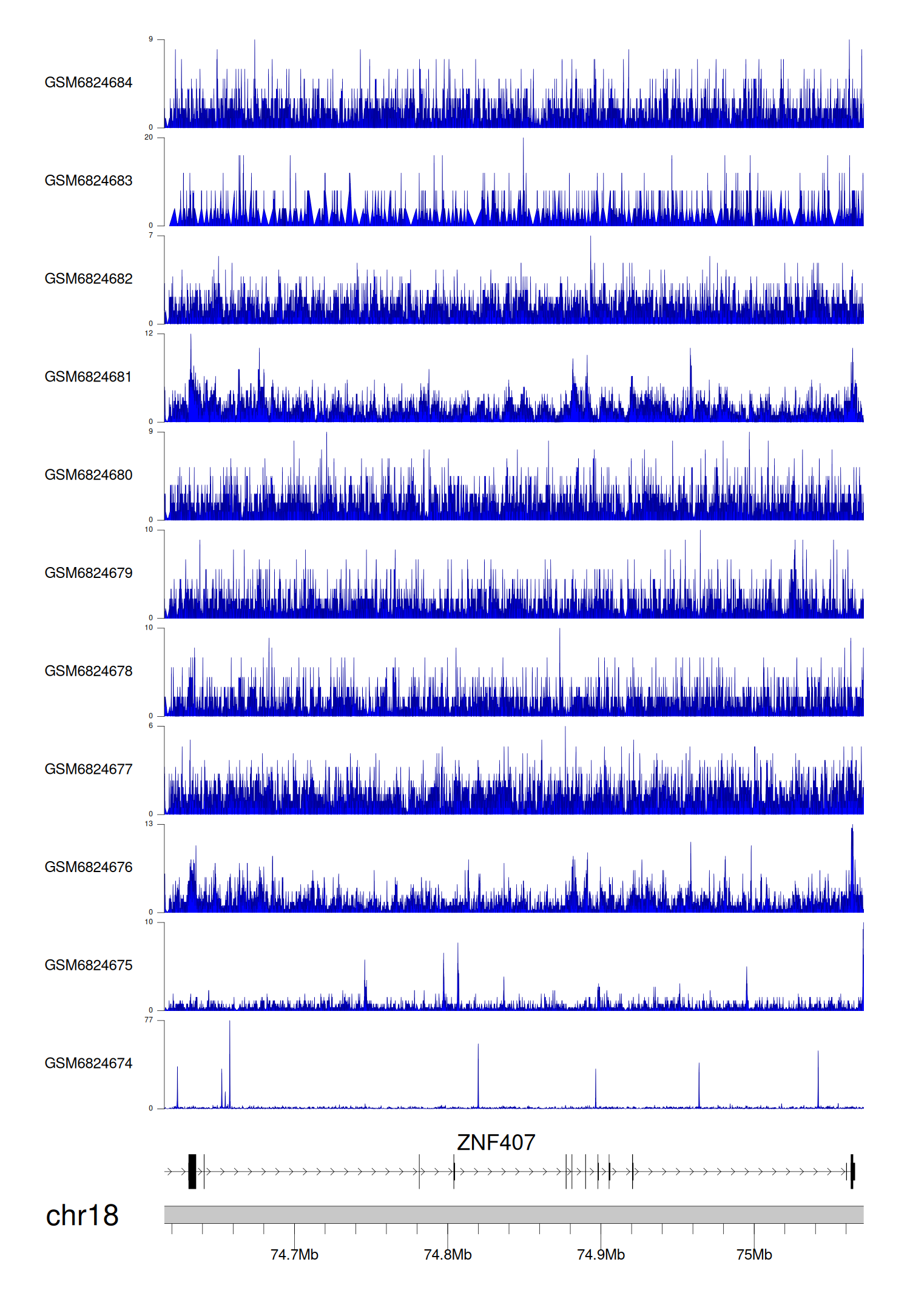 > Dataset: GSE165703 - ZNF407 peak across samples