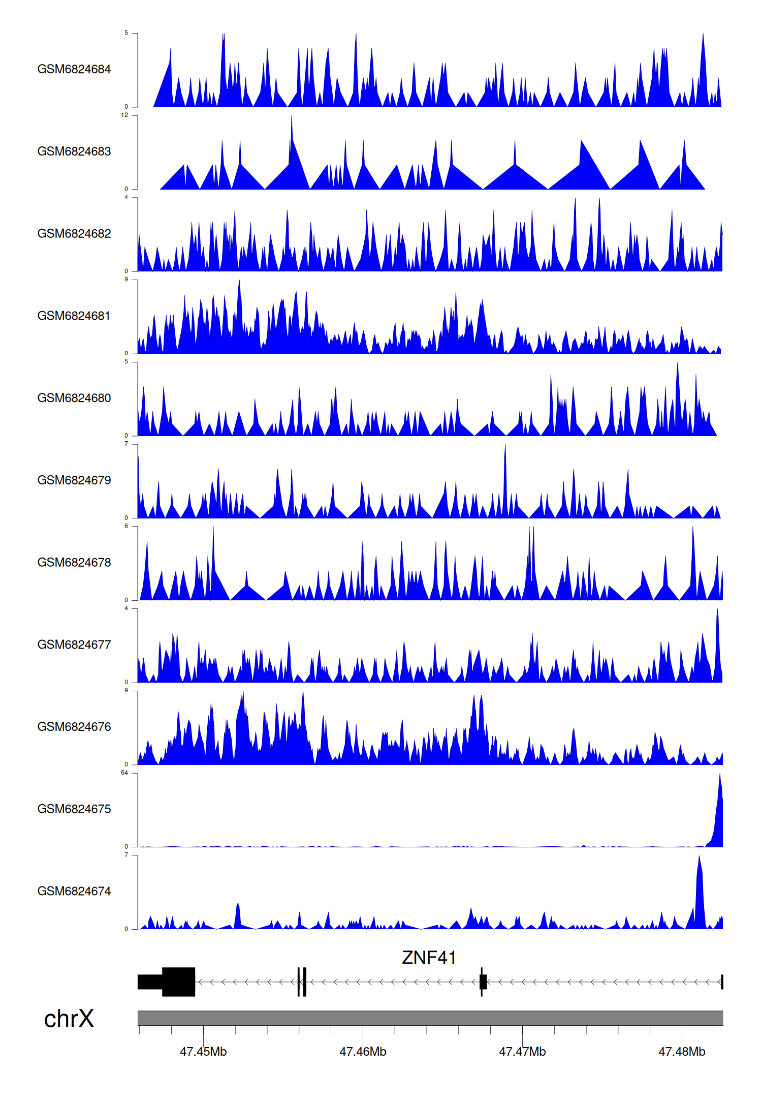 > Dataset: GSE165703 - ZNF41 peak across samples