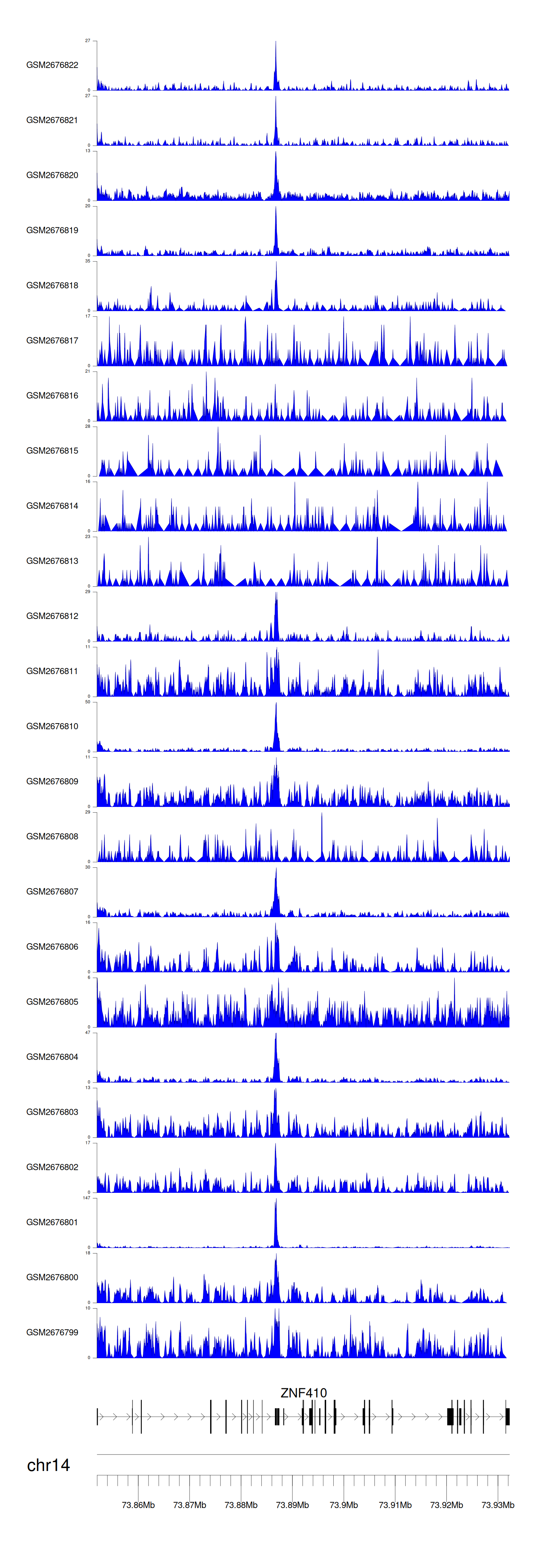 > Dataset: GSE100376 - ZNF410 peak across samples