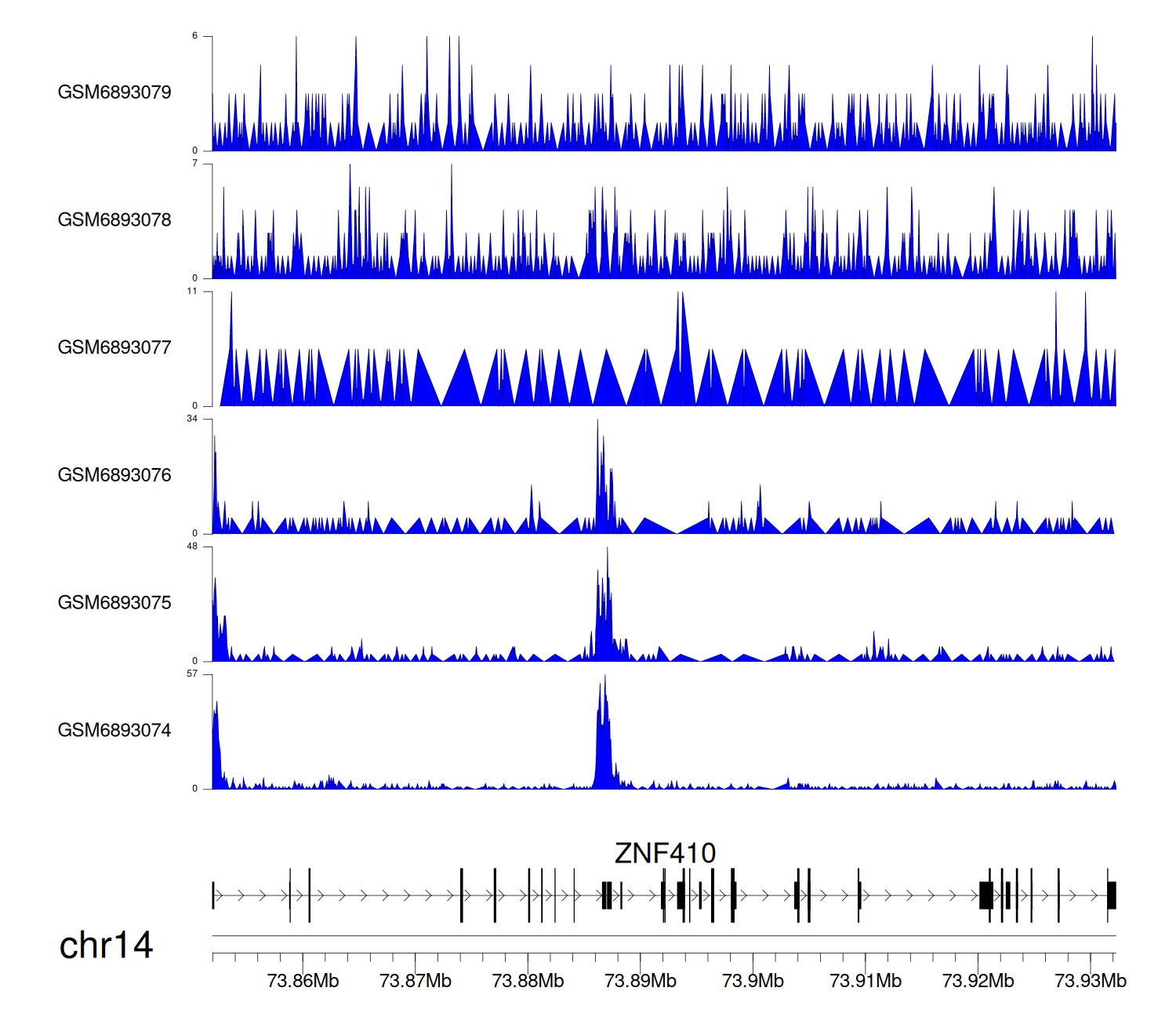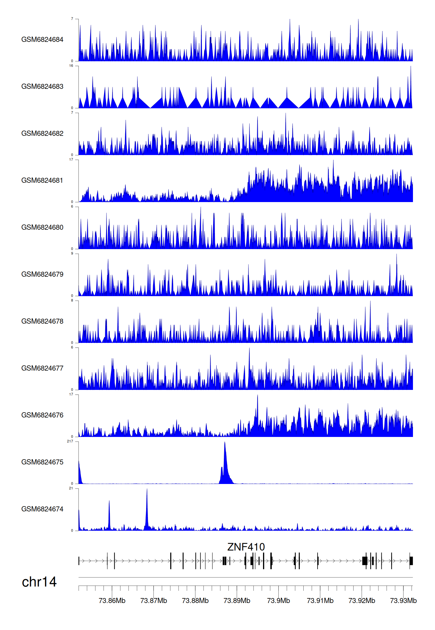 > Dataset: GSE165703 - ZNF410 peak across samples