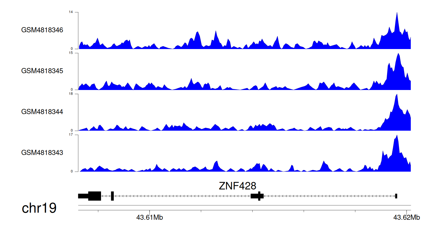 > Dataset: GSE131257 - ZNF428 peak across samples