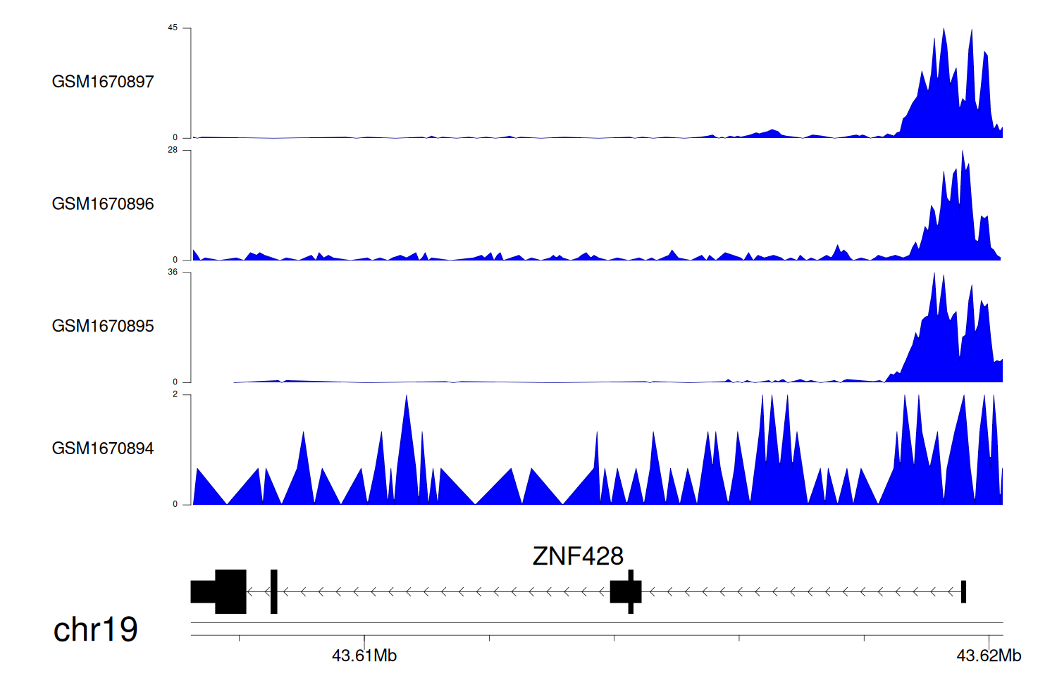 > Dataset: GSE68402 - ZNF428 peak across samples