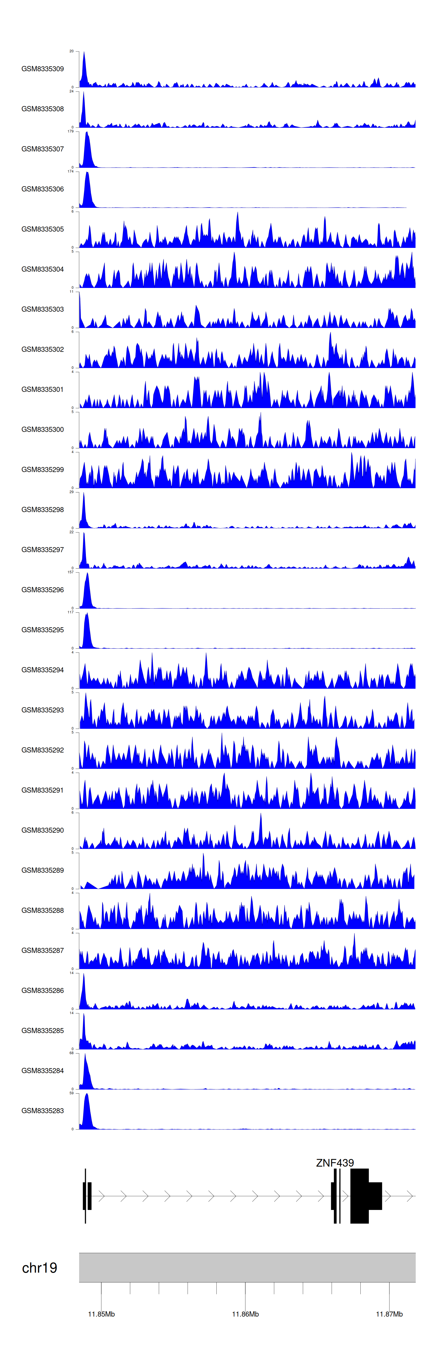 > Dataset: GSE270130 - ZNF439 peak across samples