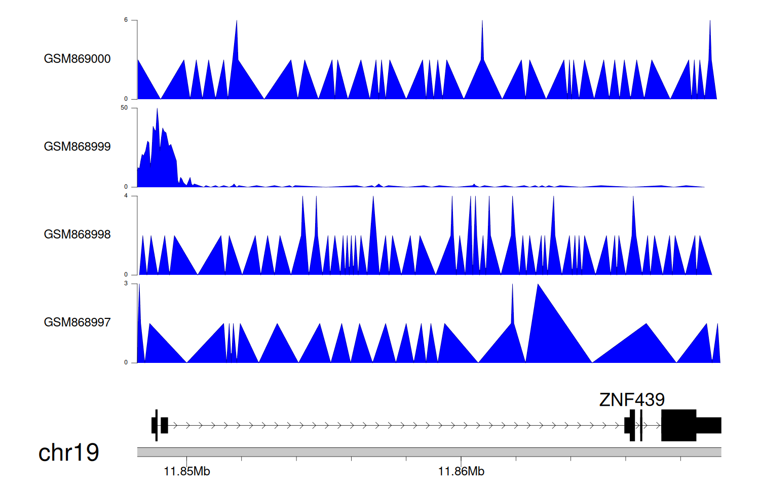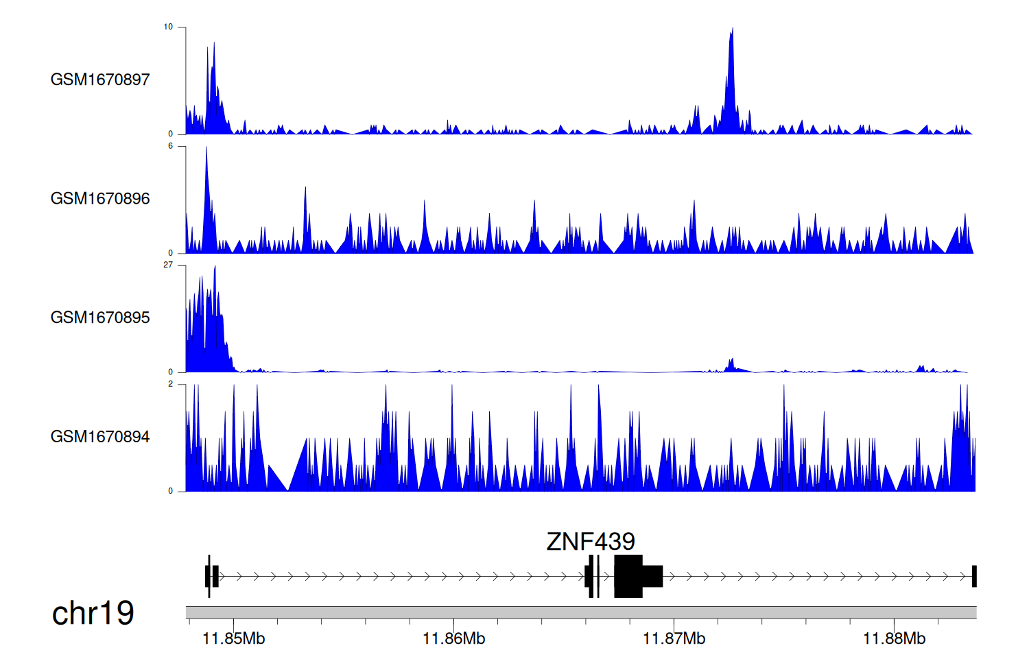 > Dataset: GSE68402 - ZNF439 peak across samples