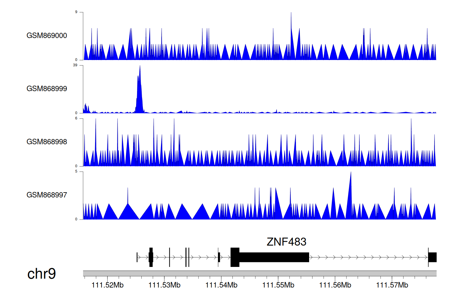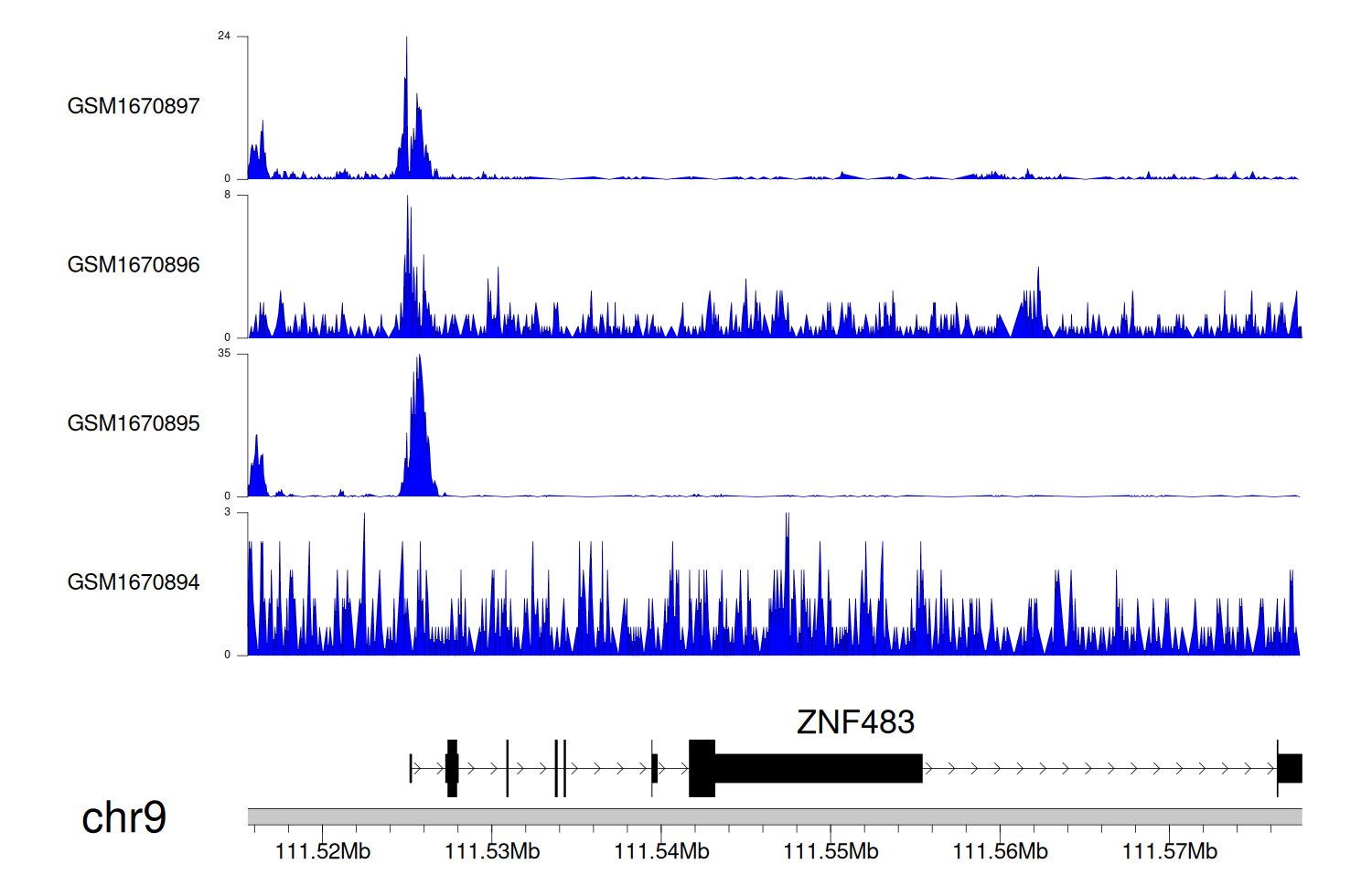 > Dataset: GSE68402 - ZNF483 peak across samples