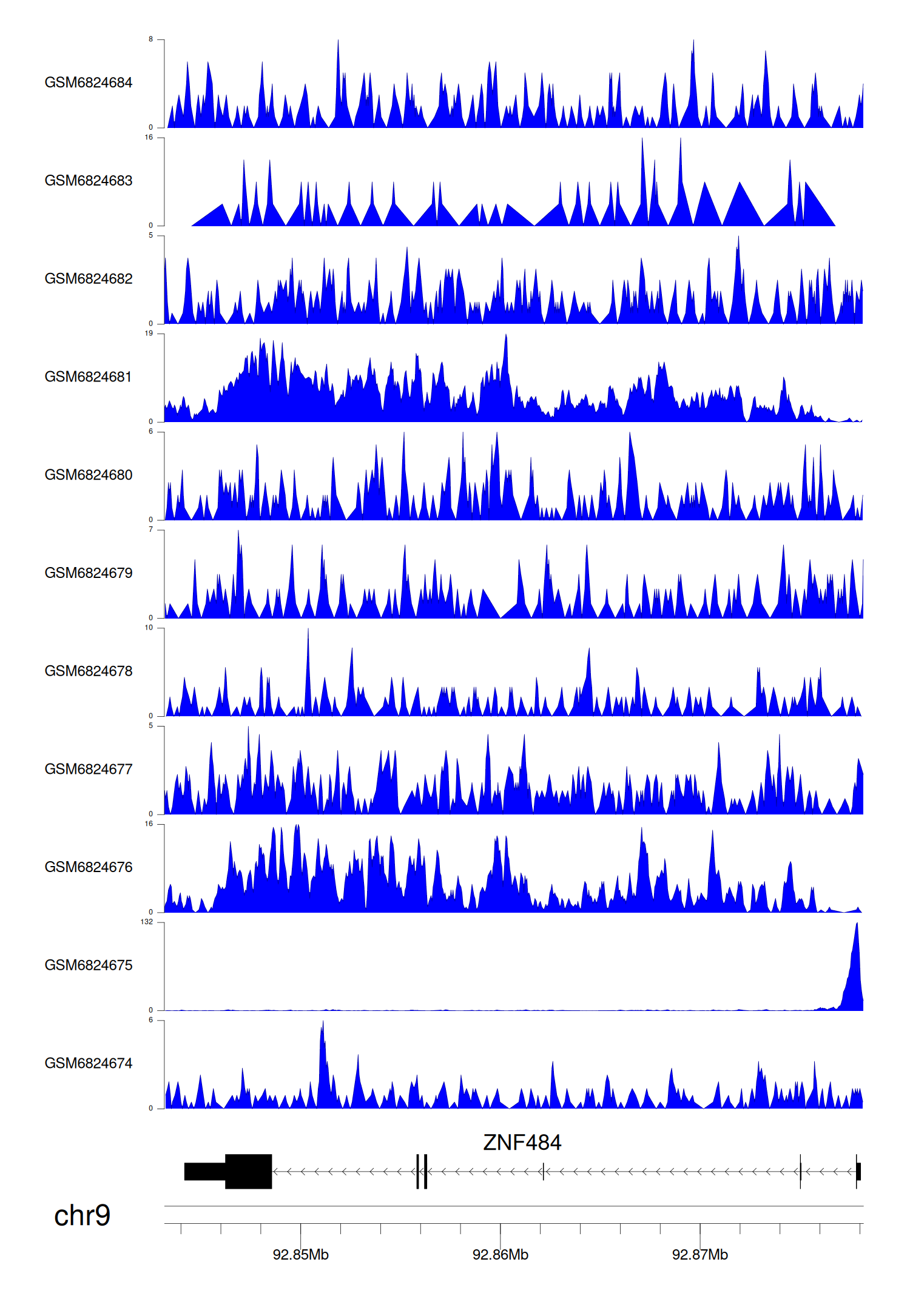 > Dataset: GSE165703 - ZNF484 peak across samples