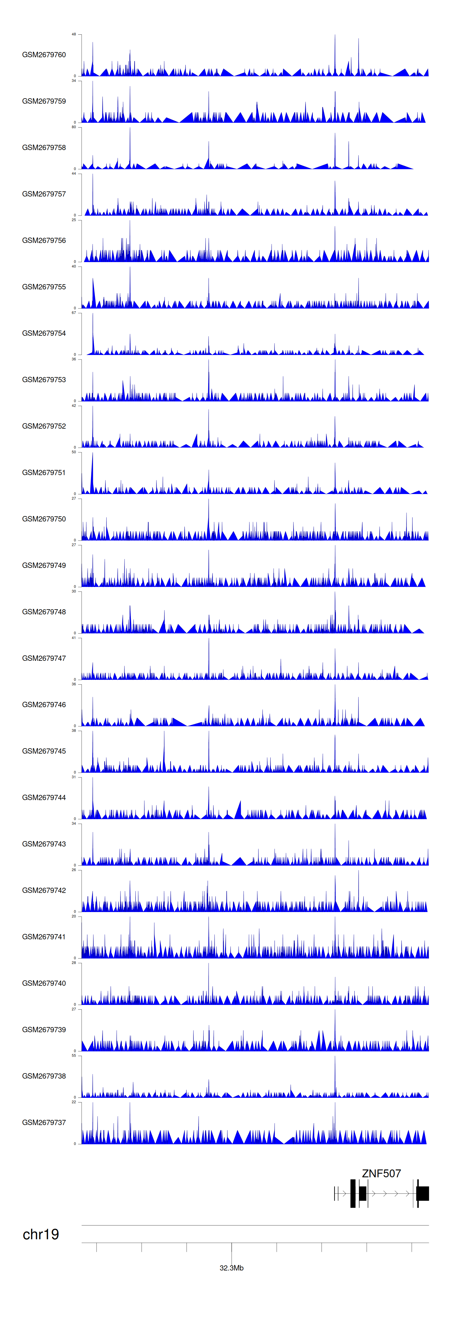 > Dataset: GSE30738 - ZNF507 peak across samples