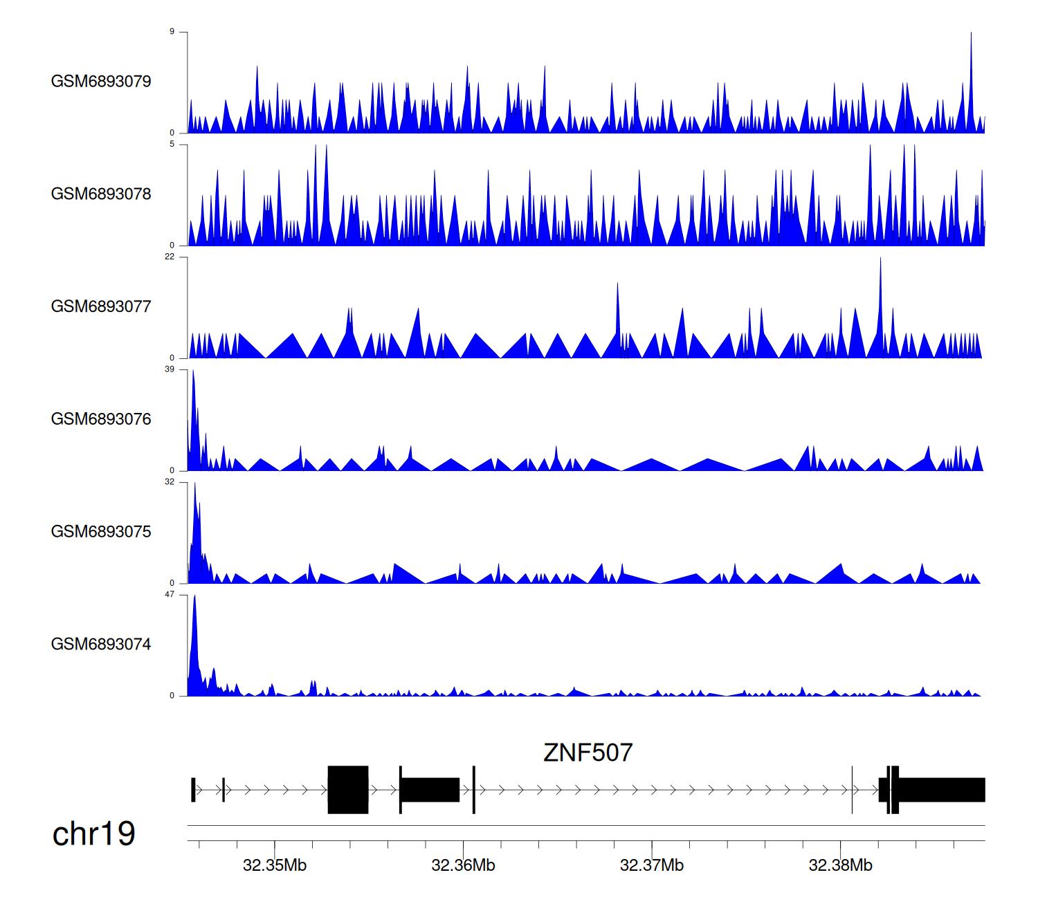 > Dataset: GSE220859 - ZNF507 peak across samples