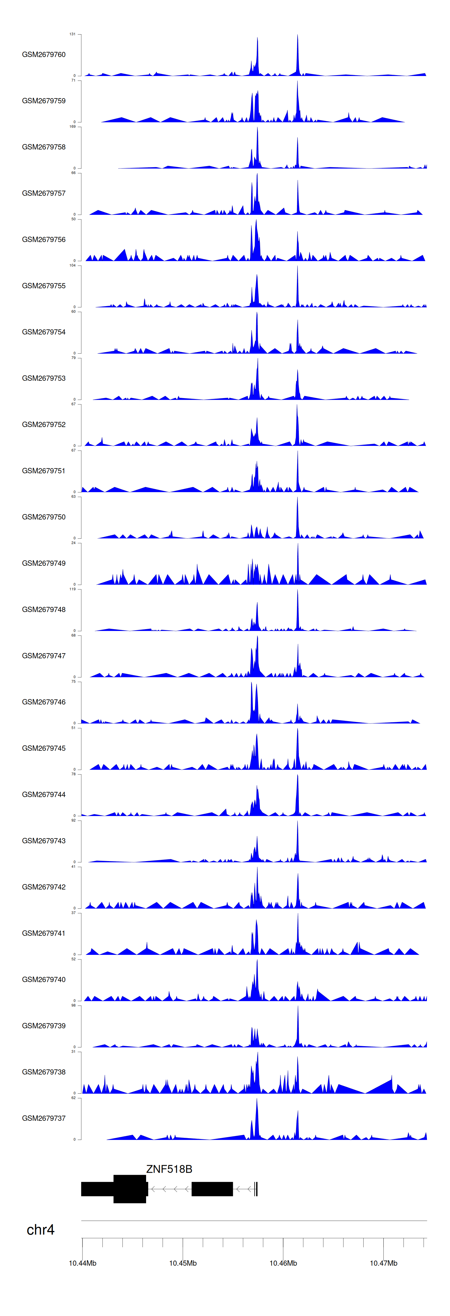 > Dataset: GSE165703 - ZNF518B peak across samples