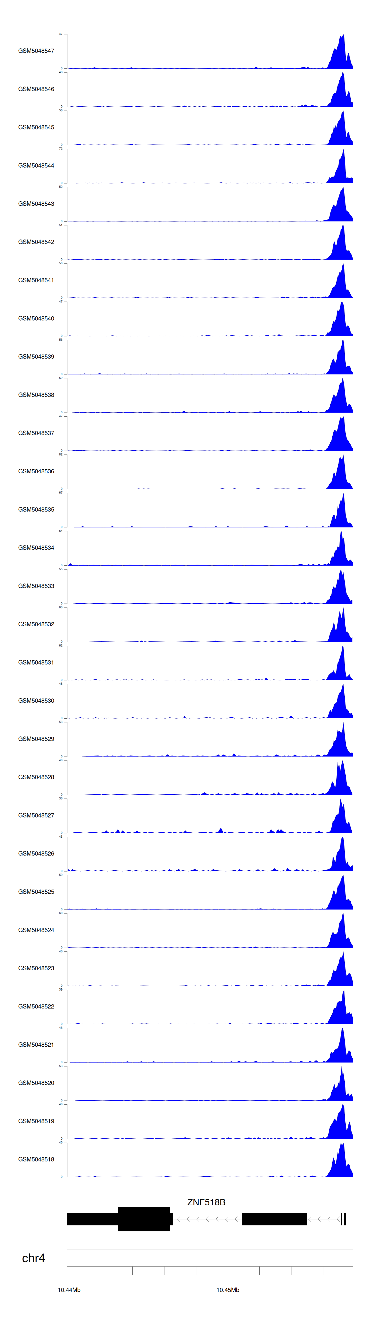 > Dataset: GSE30738 - ZNF518B peak across samples
