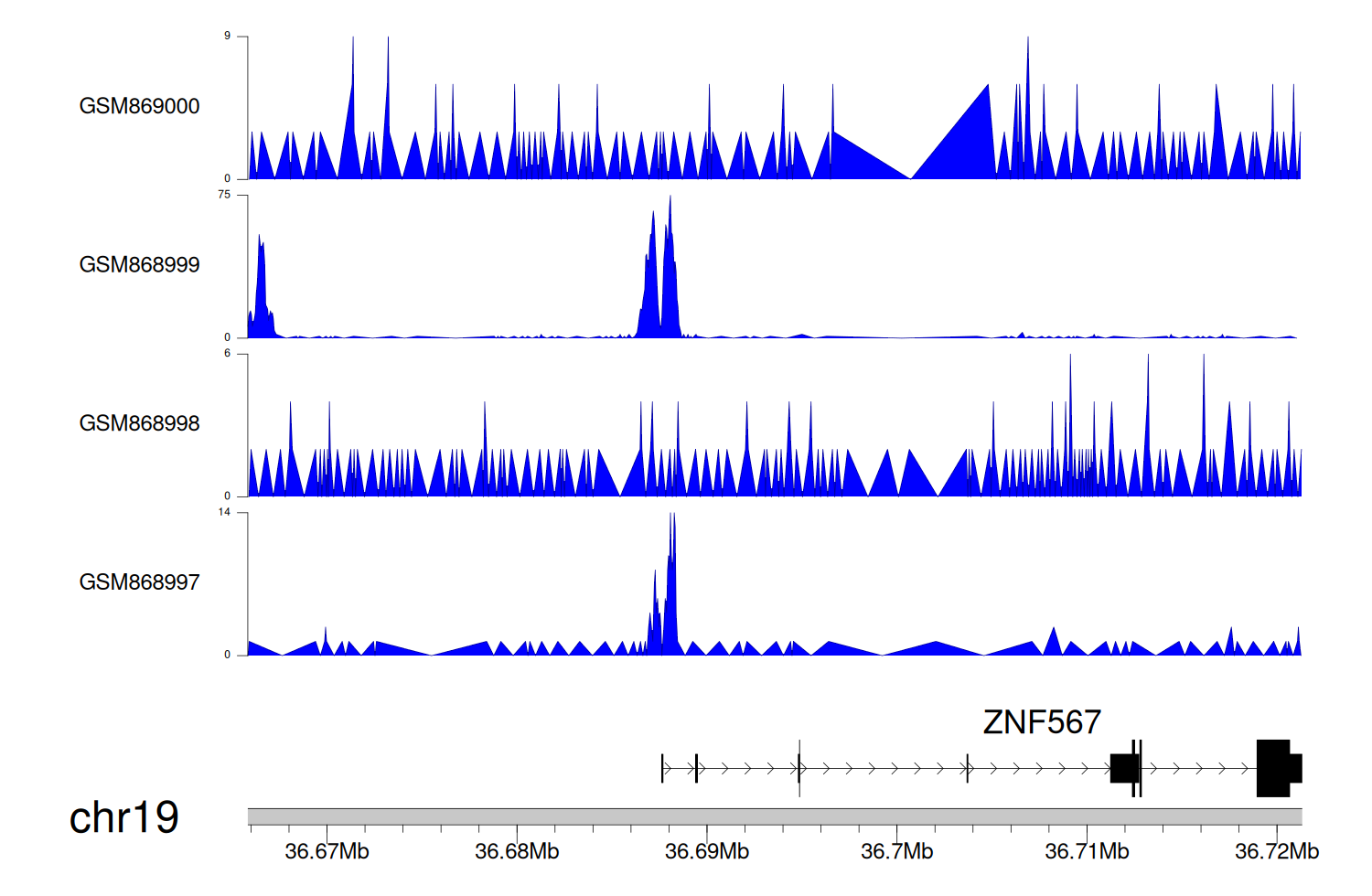 > Dataset: GSE68402 - ZNF567 peak across samples