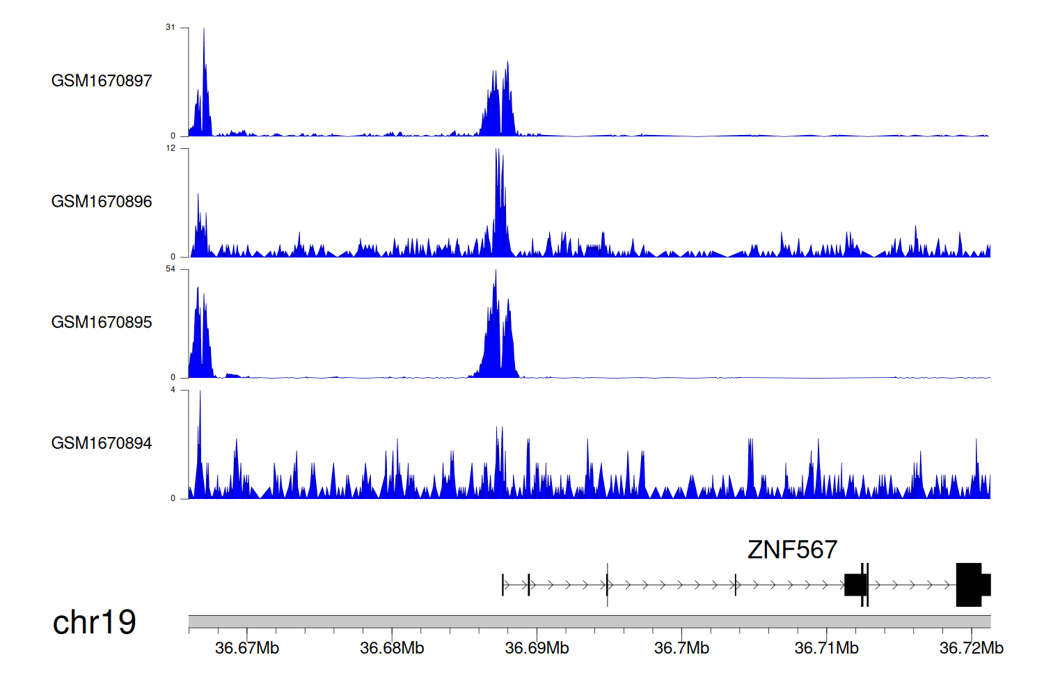 > Dataset: GSE131257 - ZNF567 peak across samples
