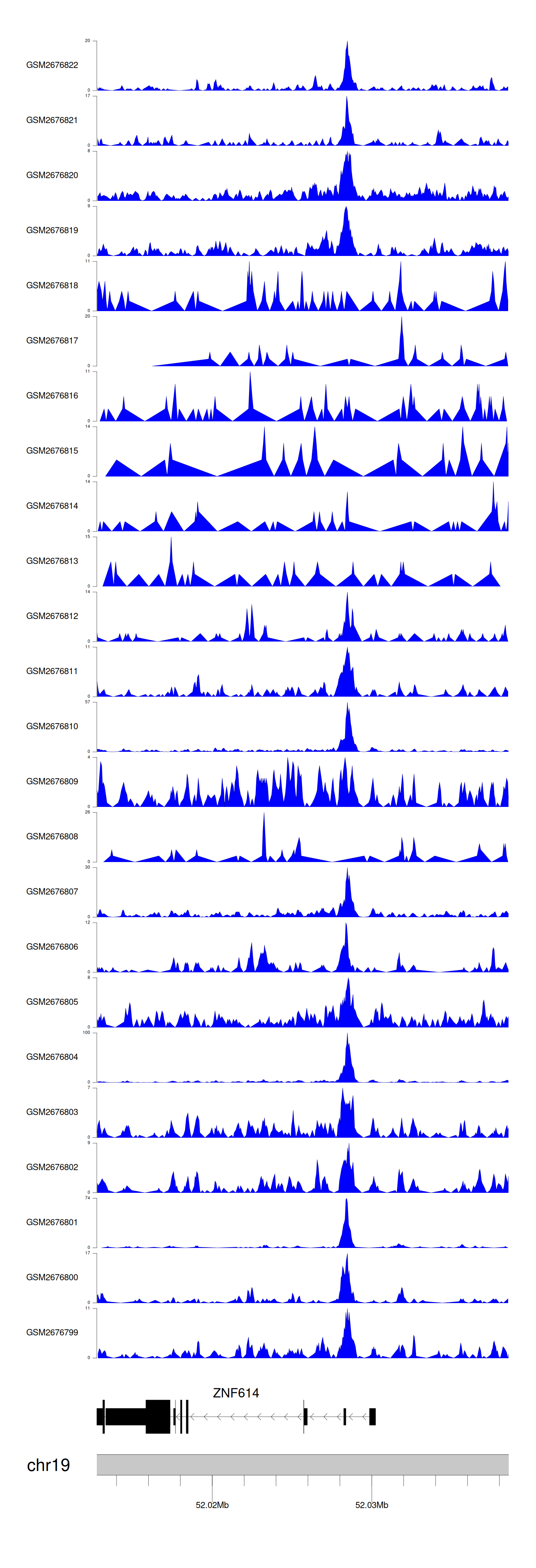 > Dataset: GSE100376 - ZNF614 peak across samples