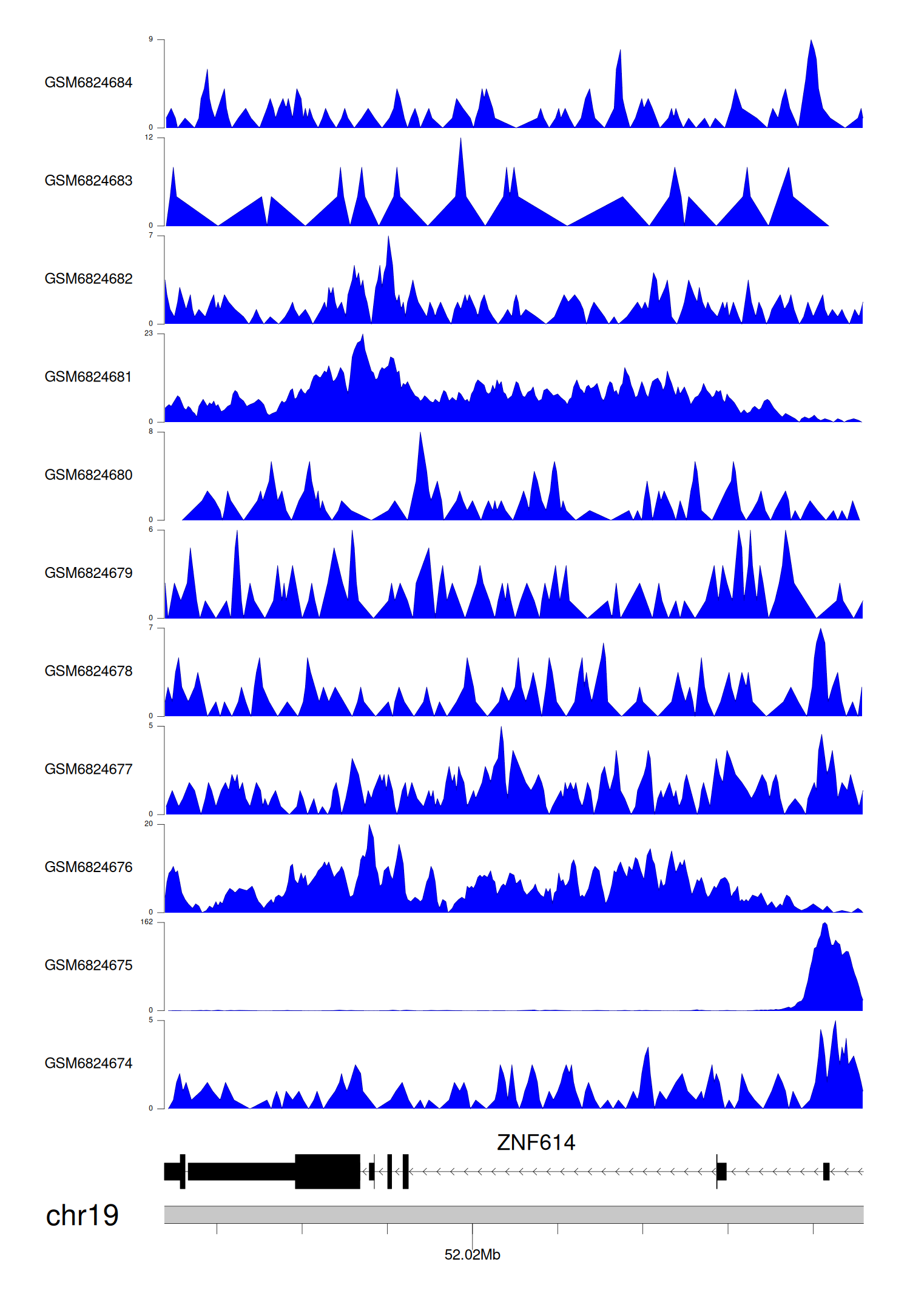 > Dataset: GSE144329 - ZNF614 peak across samples