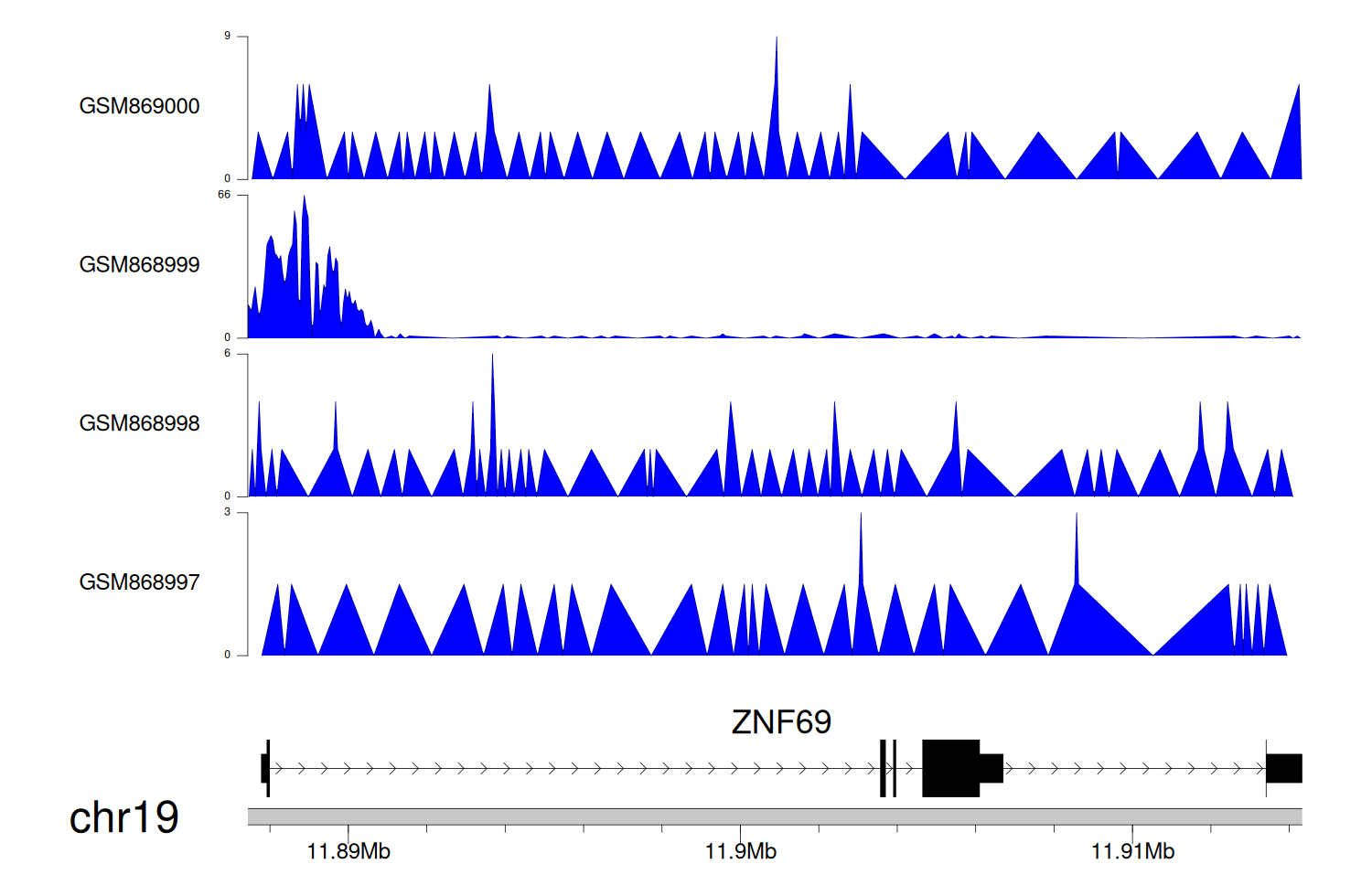 > Dataset: GSE68402 - ZNF69 peak across samples