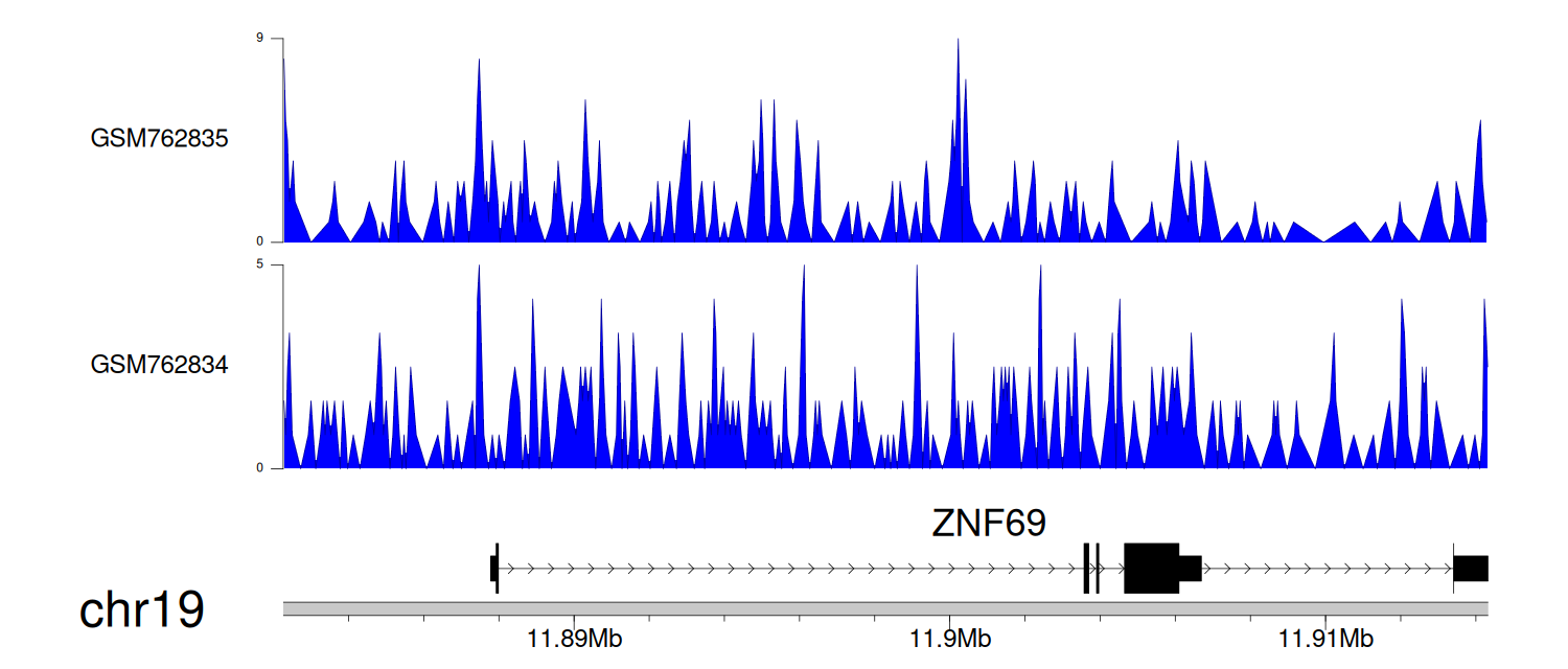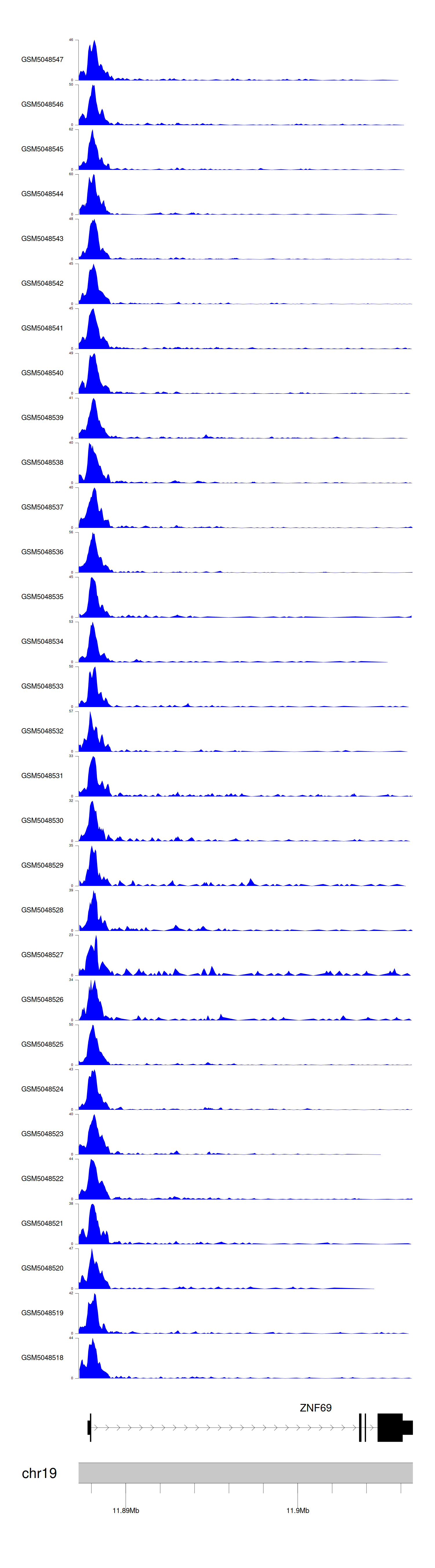 > Dataset: GSE30738 - ZNF69 peak across samples