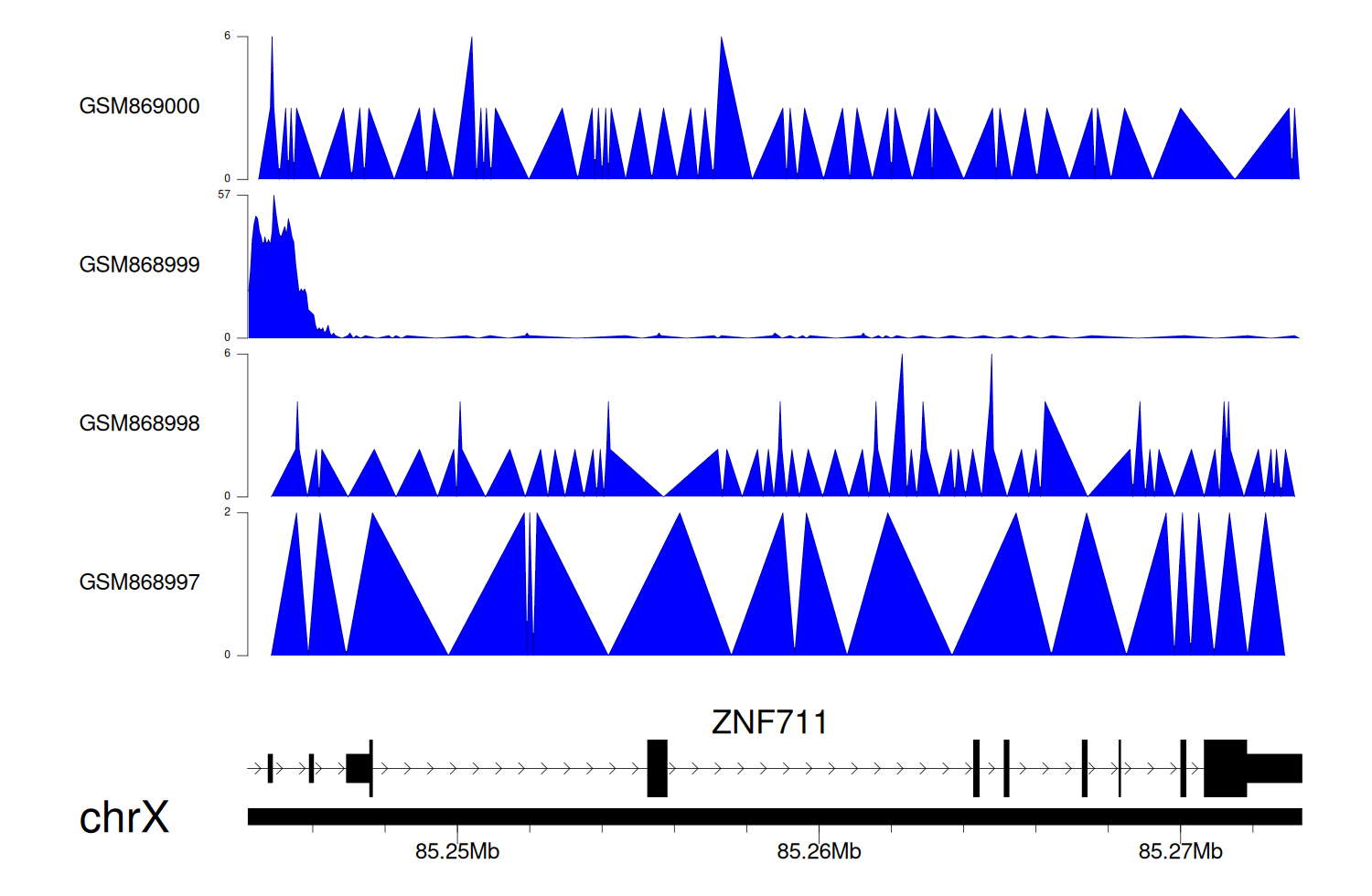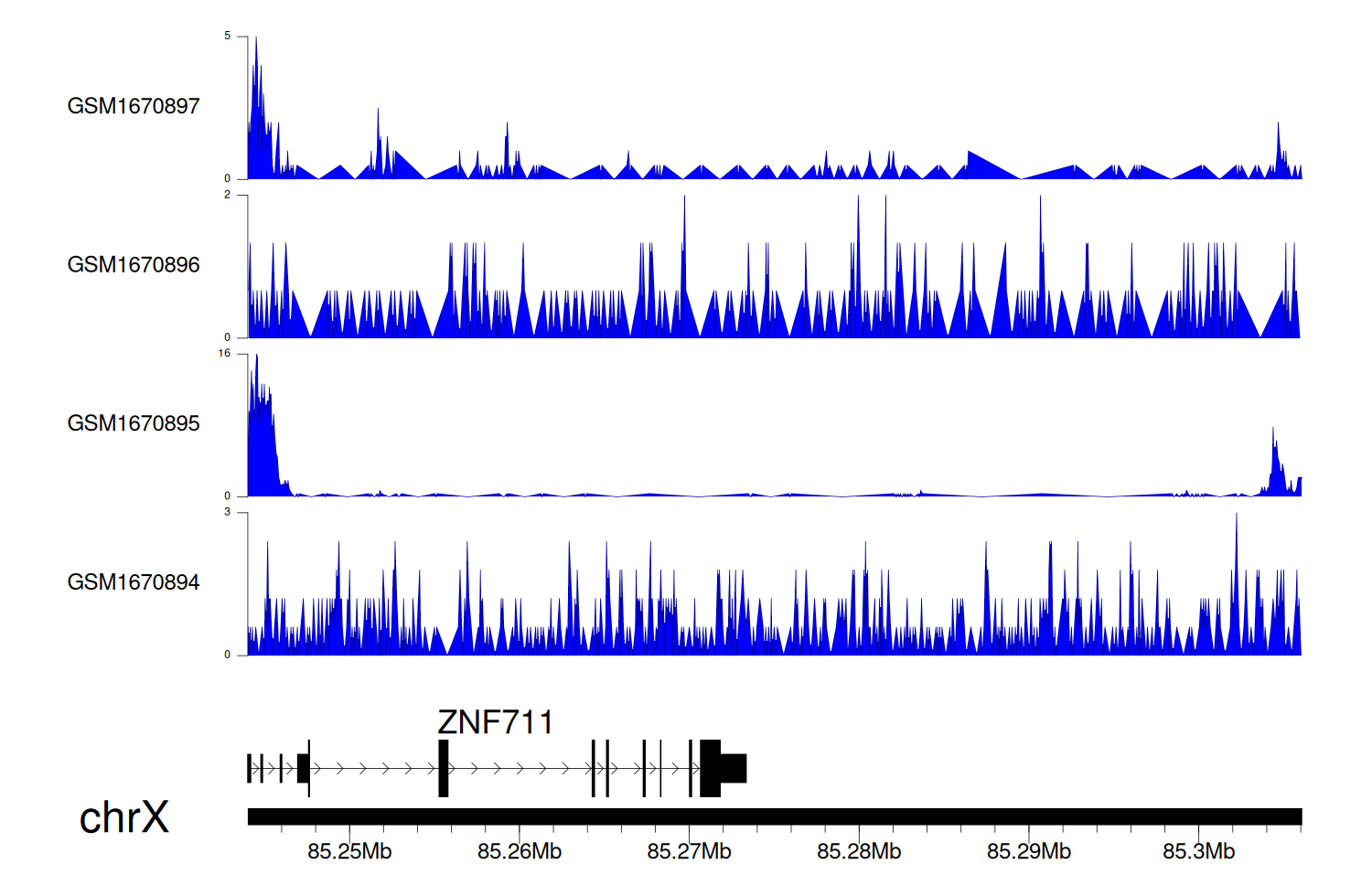 > Dataset: GSE68402 - ZNF711 peak across samples