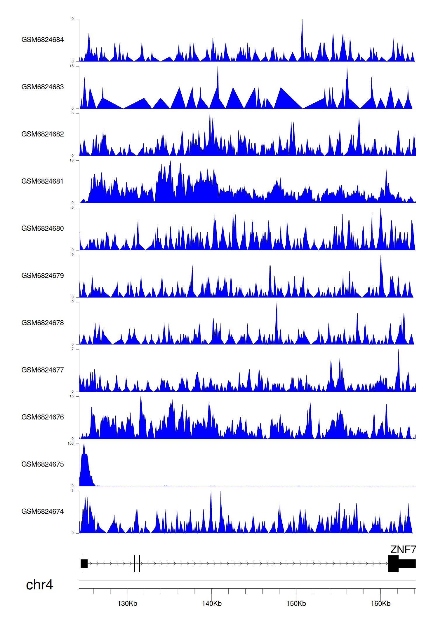 > Dataset: GSE165703 - ZNF718 peak across samples