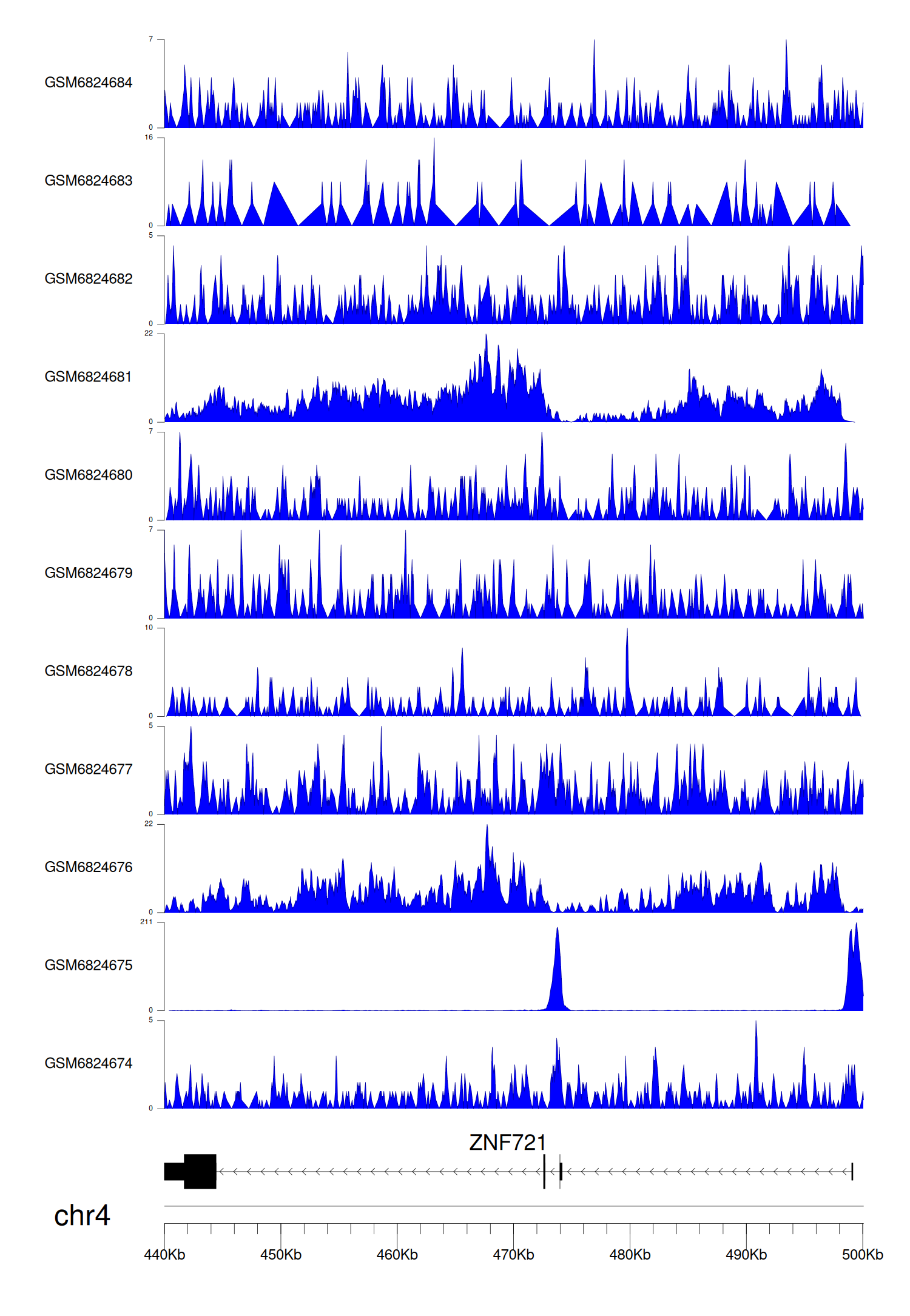 > Dataset: GSE165705 - ZNF721 peak across samples