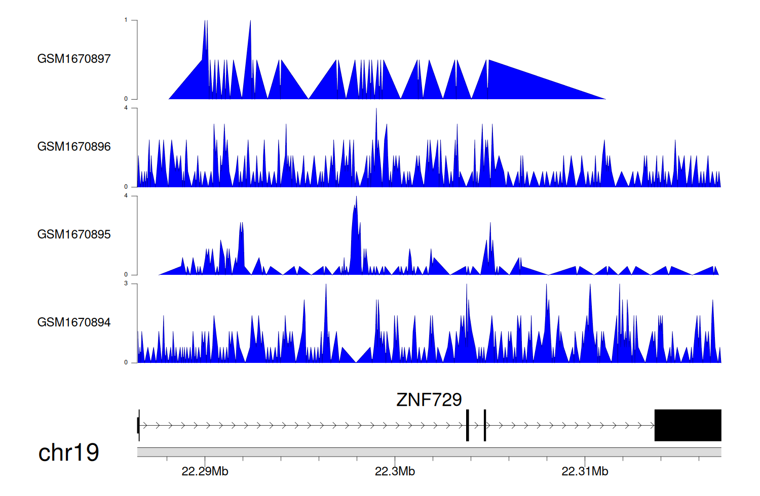 > Dataset: GSE68402 - ZNF729 peak across samples