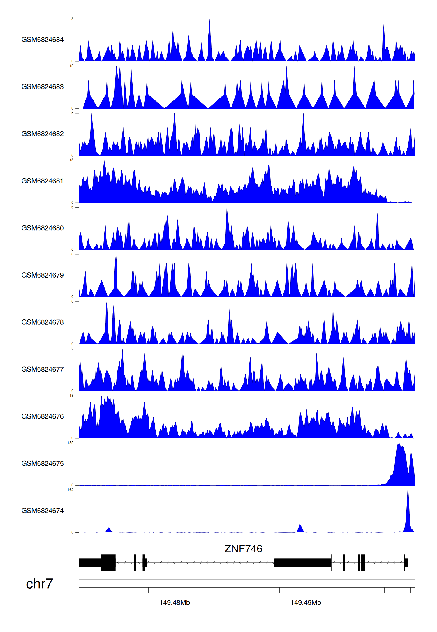 > Dataset: GSE165705 - ZNF746 peak across samples