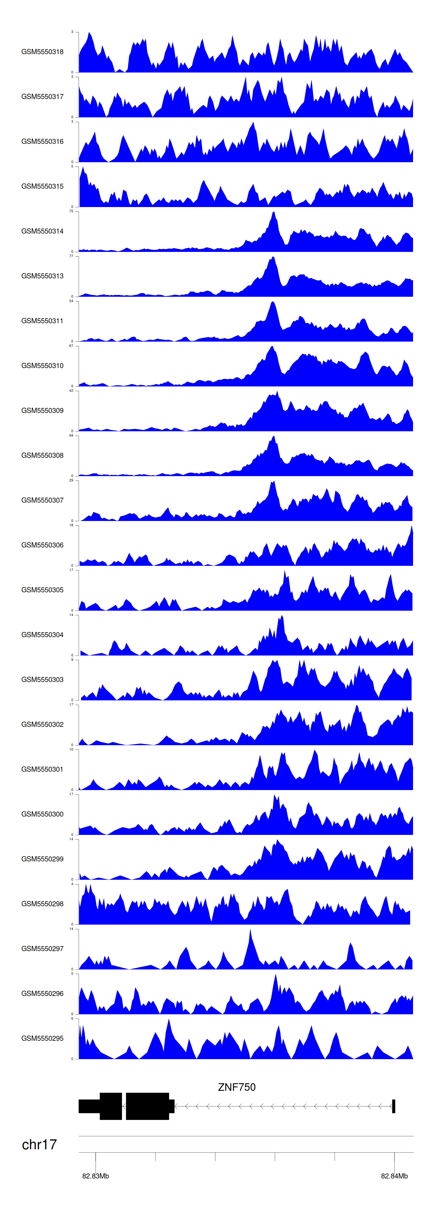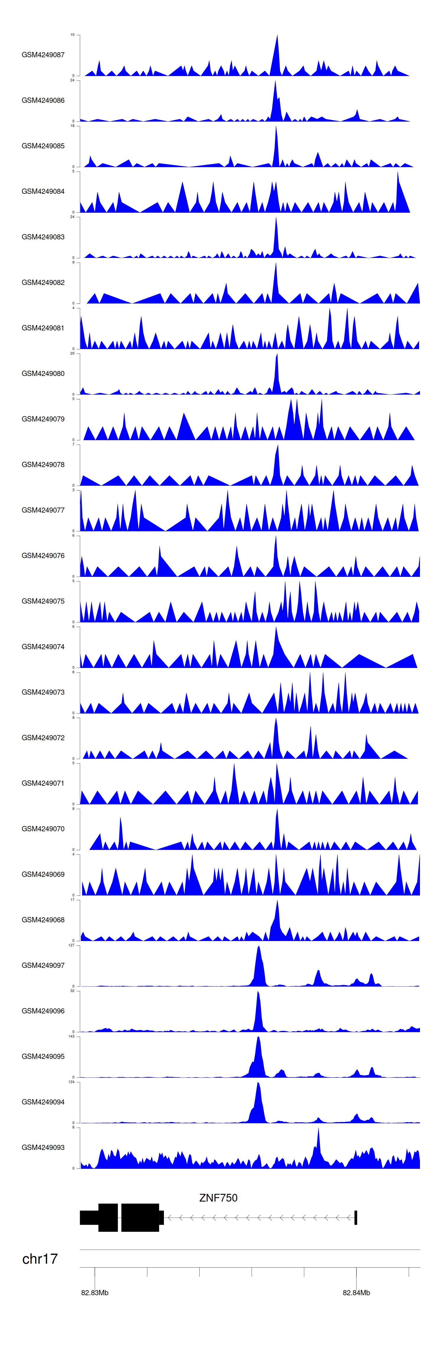 > Dataset: GSE143026 - ZNF750 peak across samples
