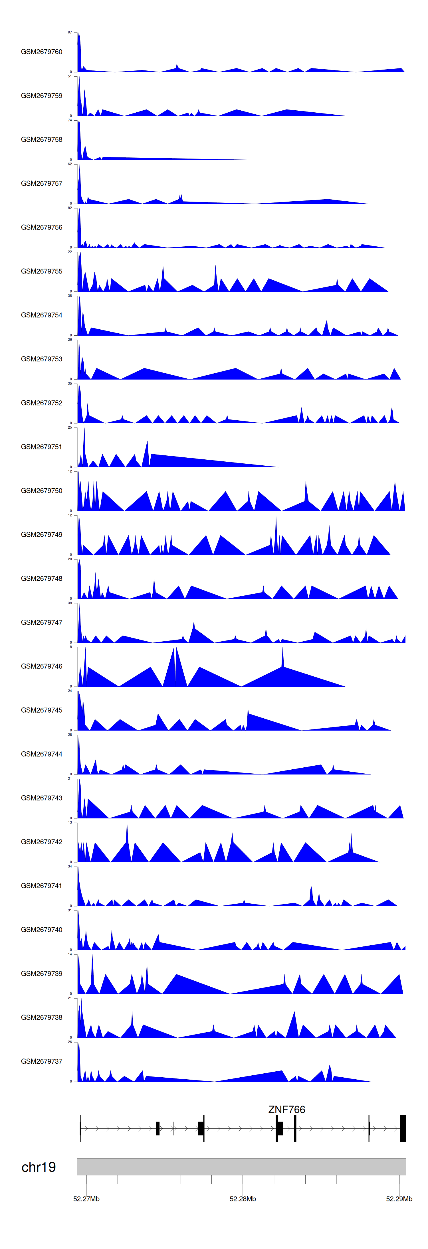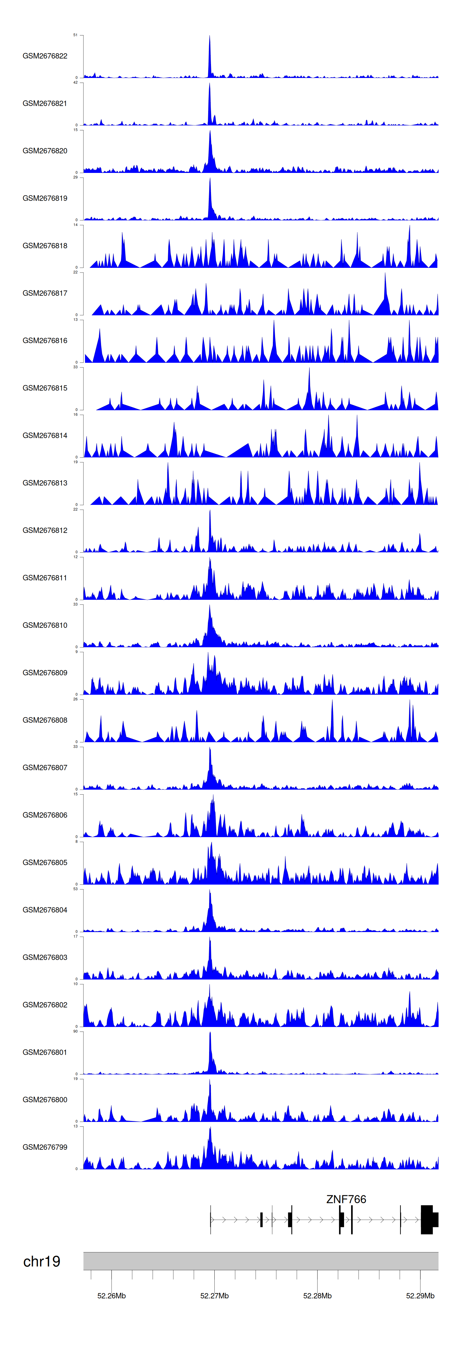 > Dataset: GSE100266 - ZNF766 peak across samples