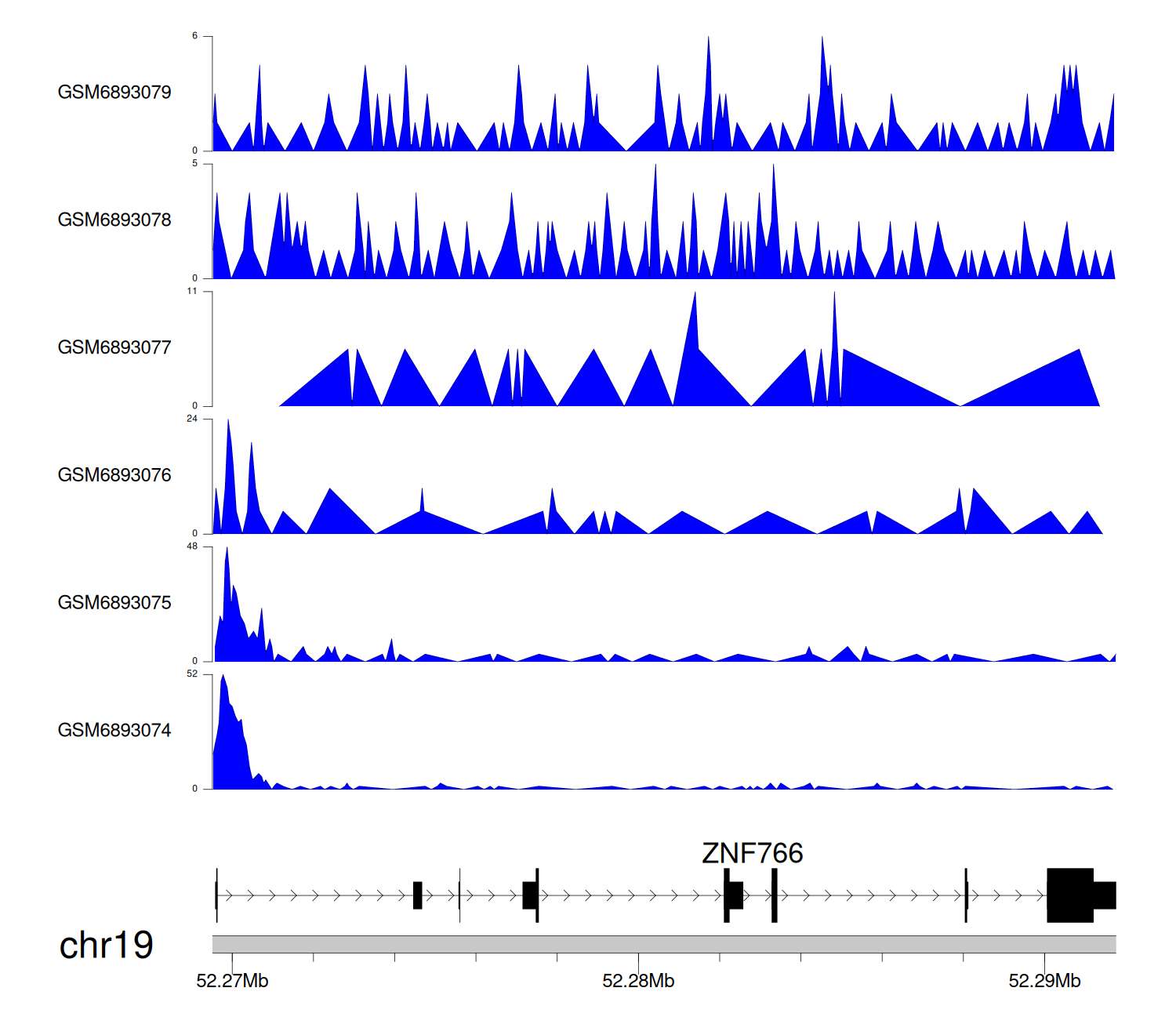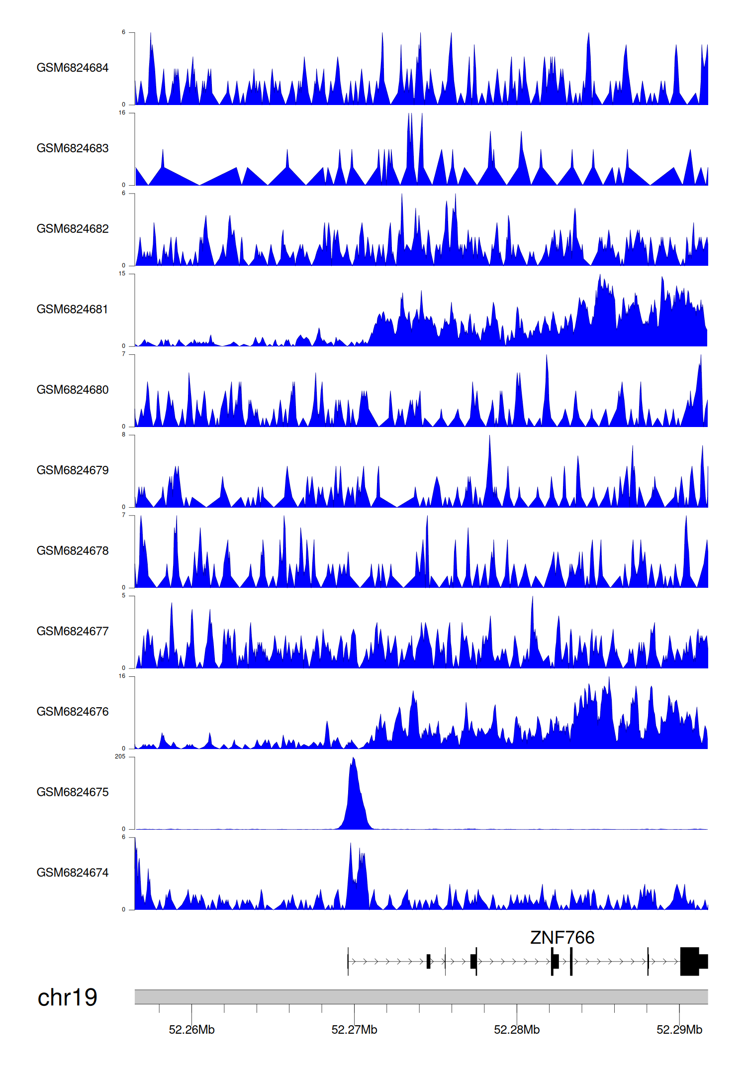 > Dataset: GSE165703 - ZNF766 peak across samples