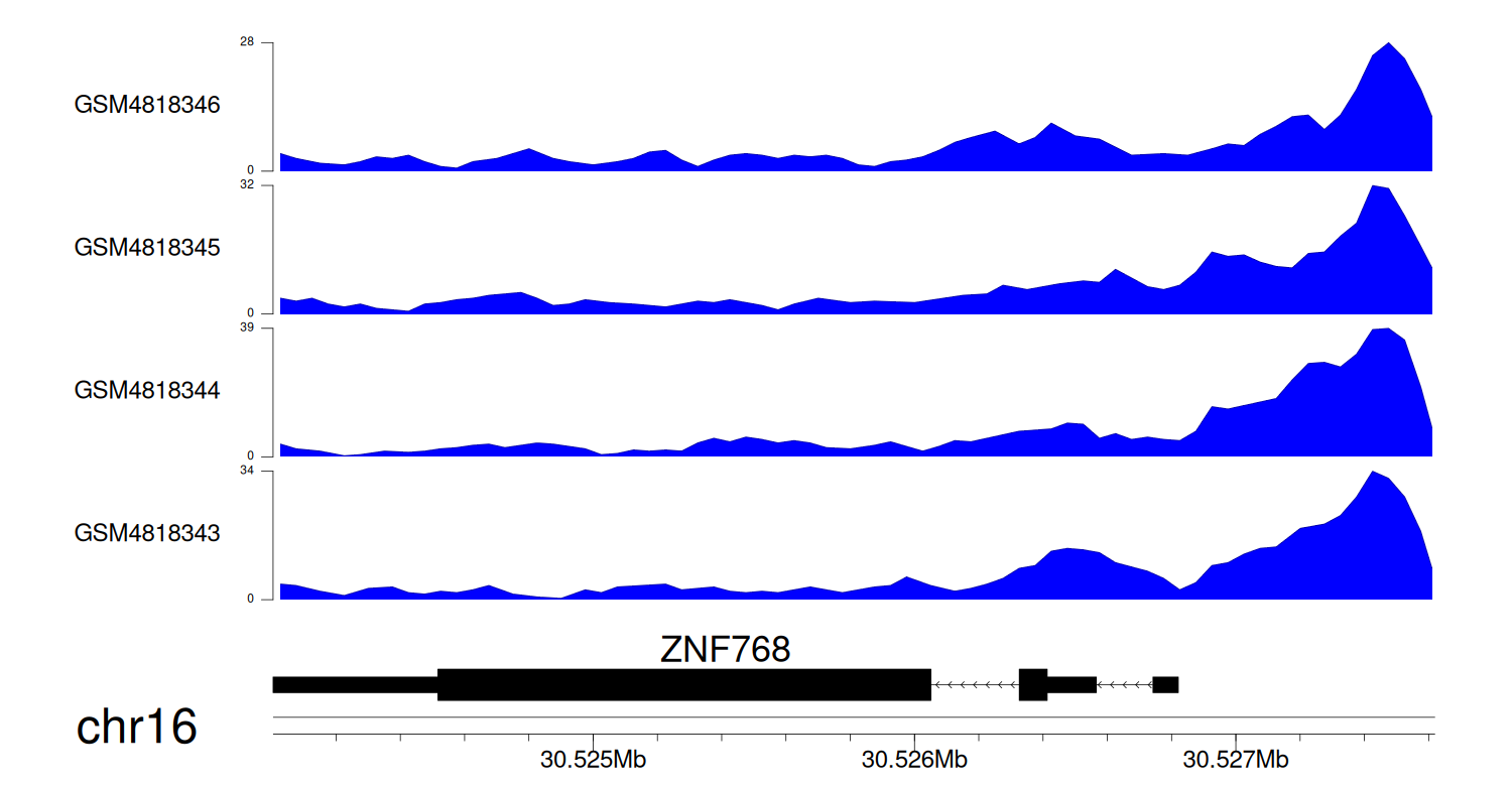 > Dataset: GSE131257 - ZNF768 peak across samples