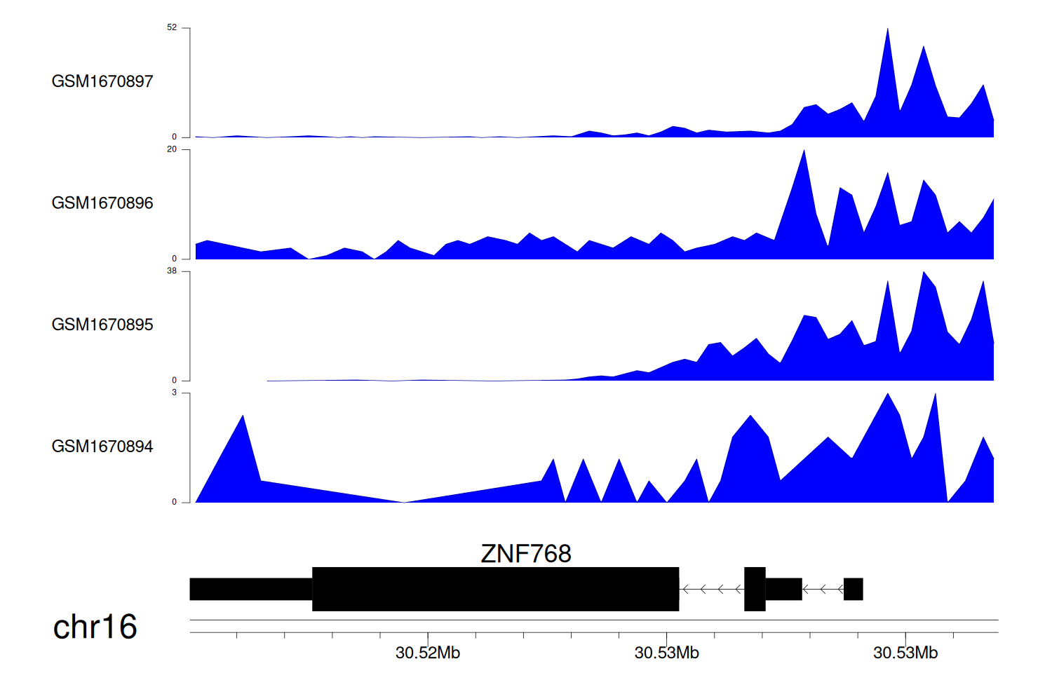 > Dataset: GSE68402 - ZNF768 peak across samples