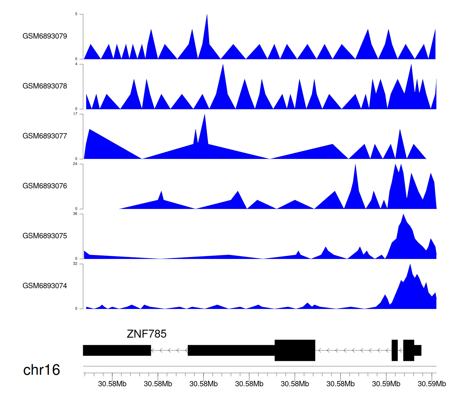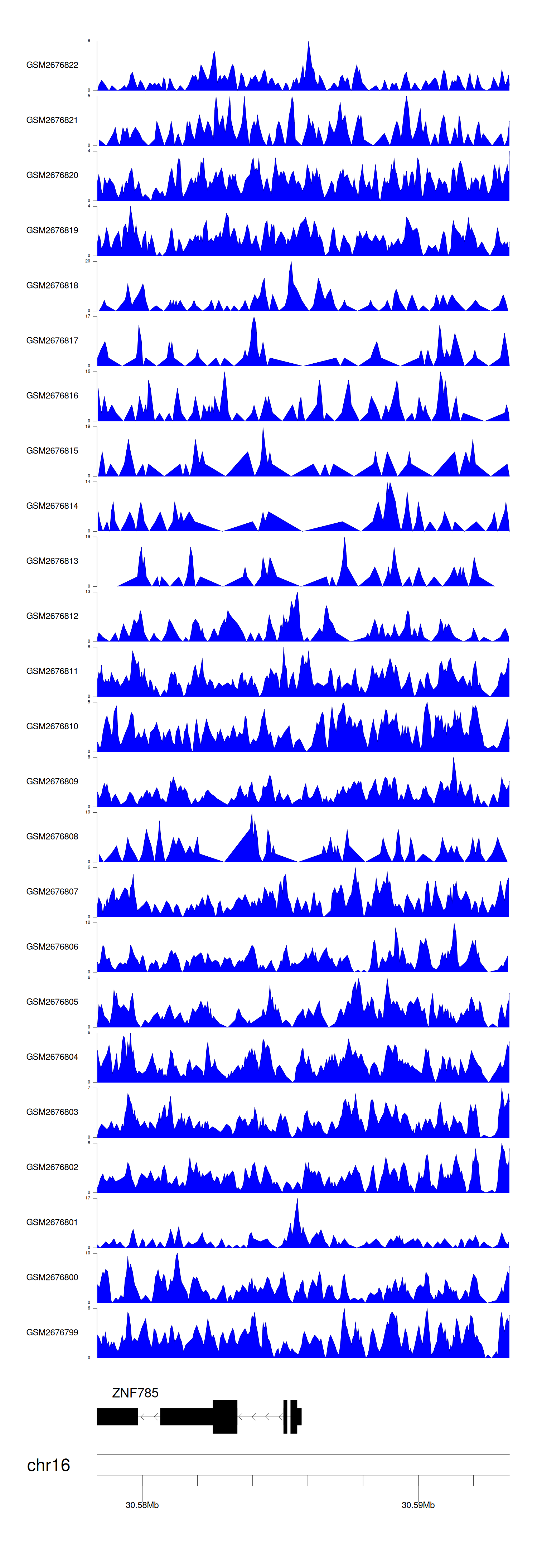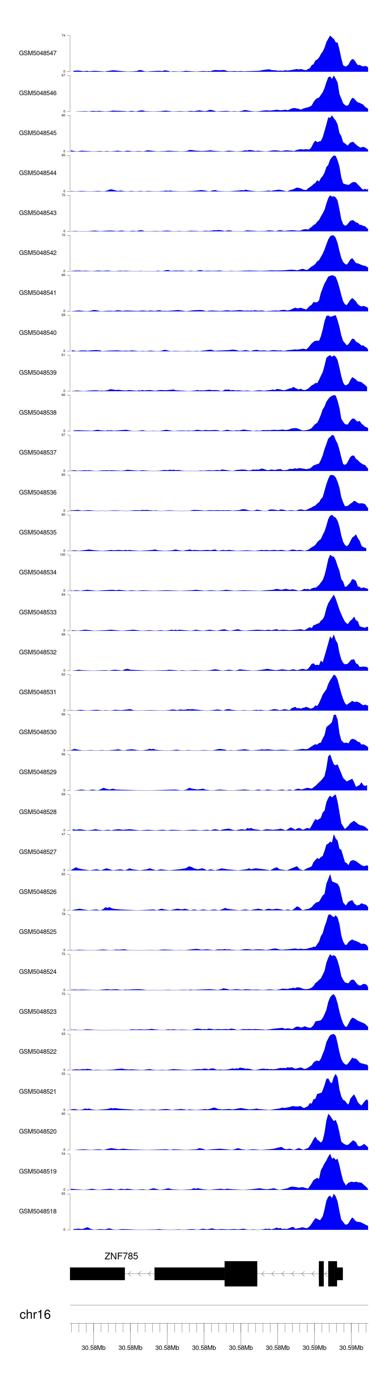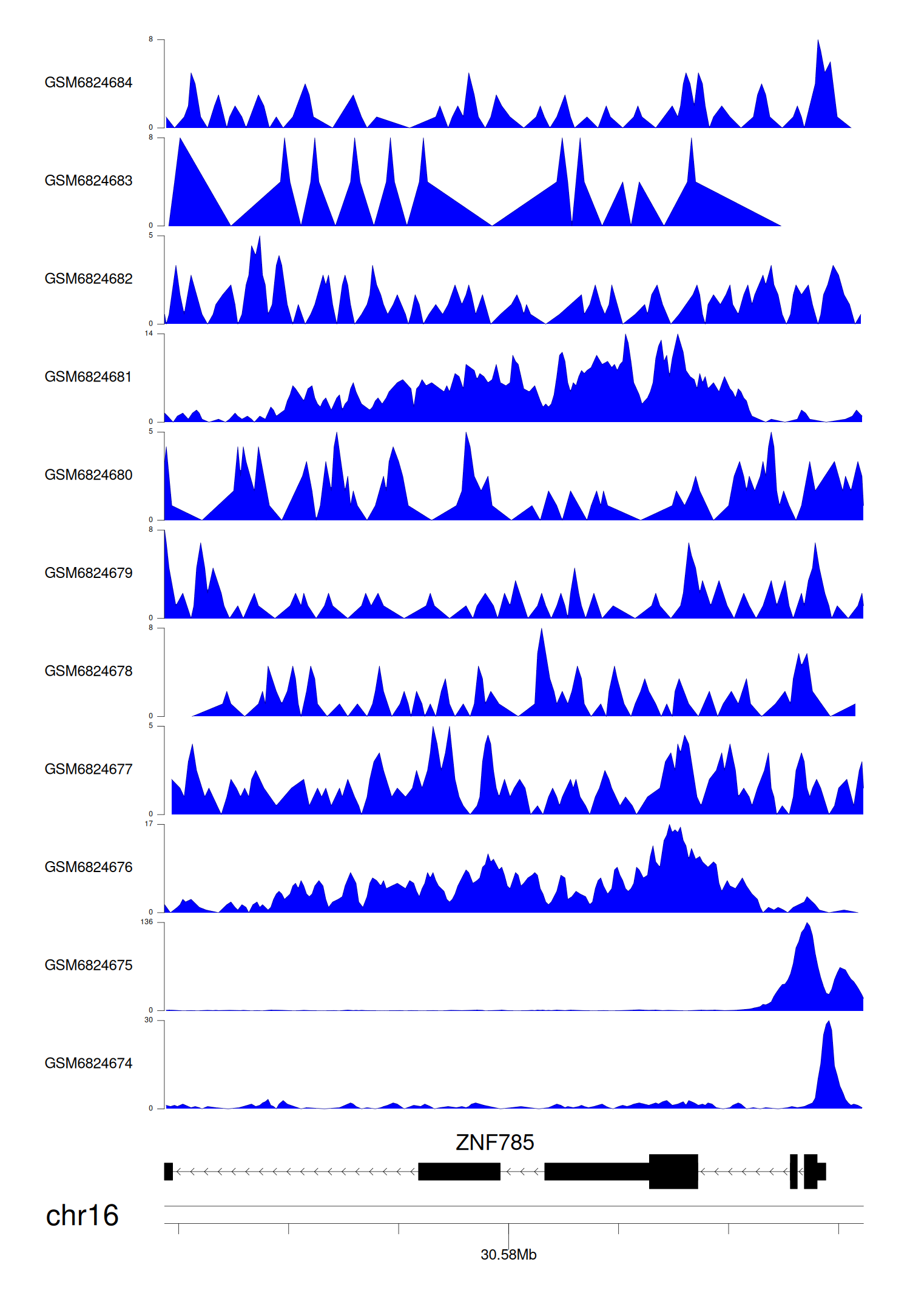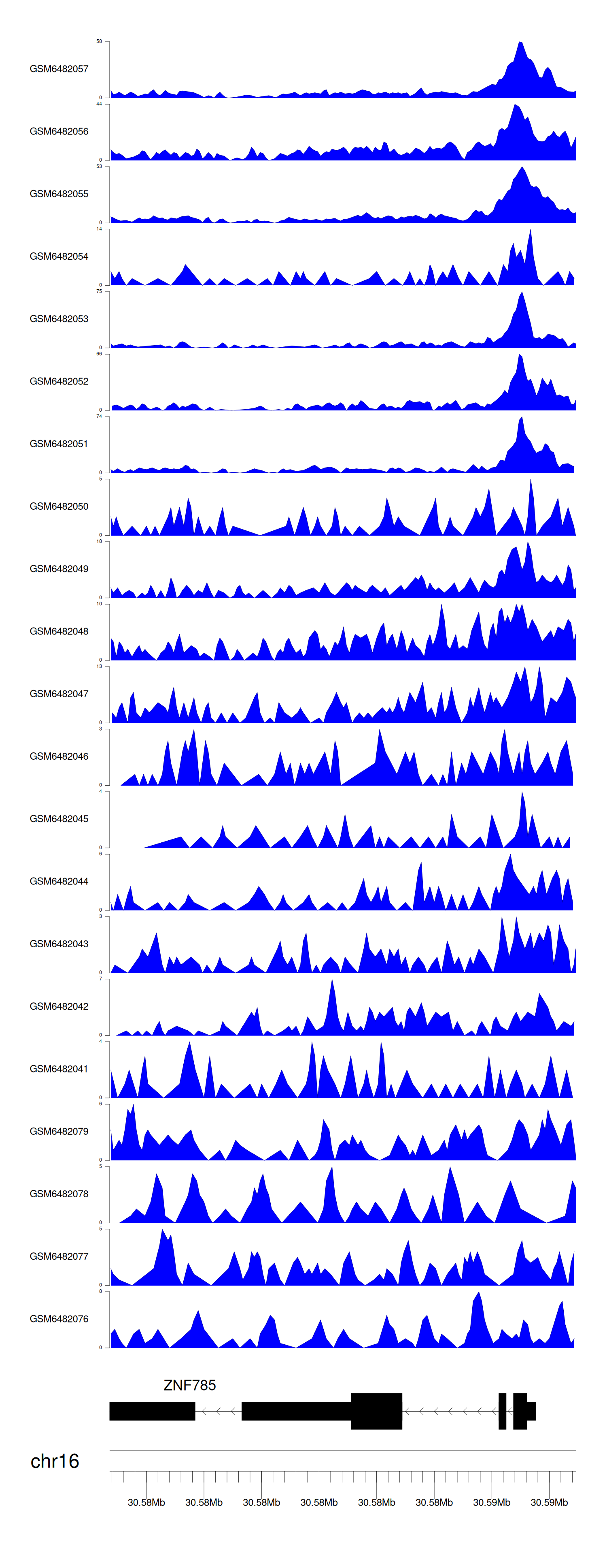 > Dataset: GSE165703 - ZNF785 peak across samples