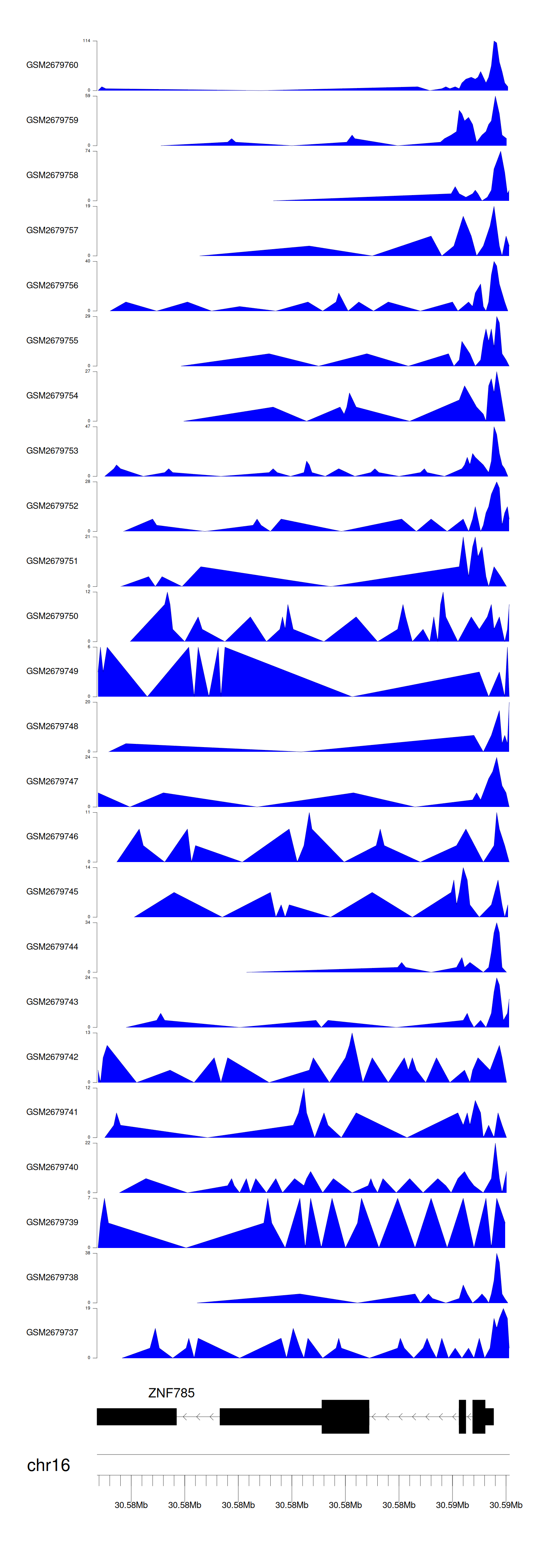> Dataset: GSE100376 - ZNF785 peak across samples