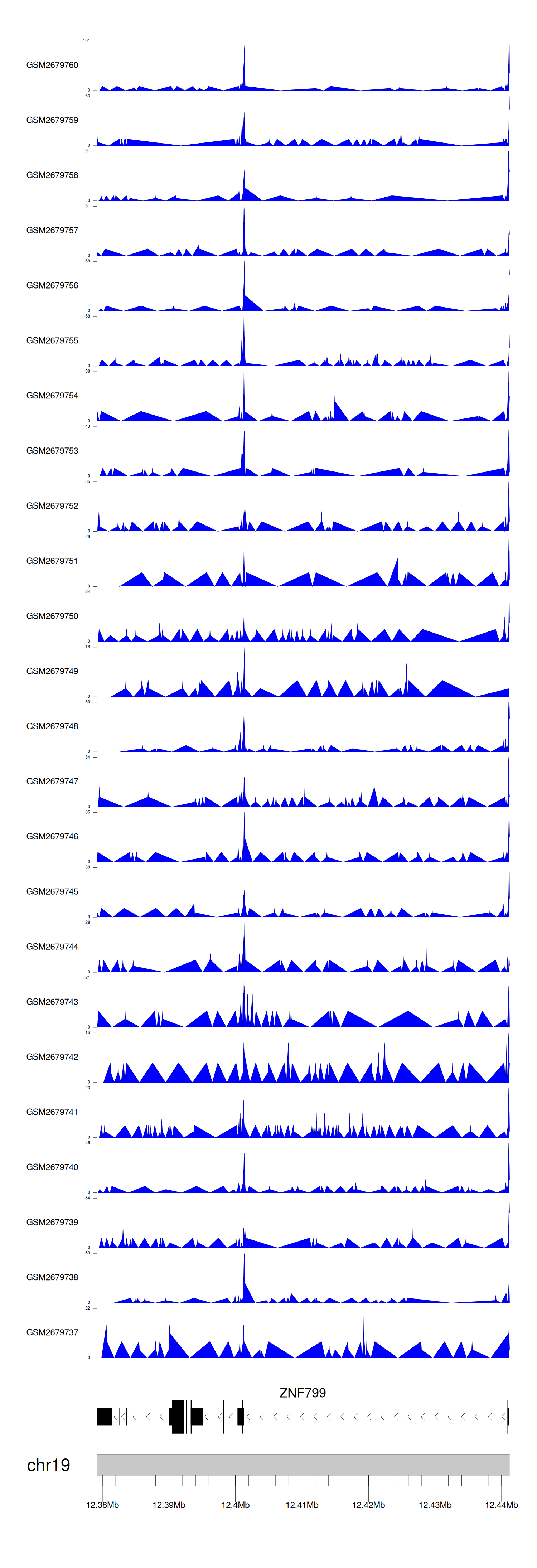 > Dataset: GSE100376 - ZNF799 peak across samples