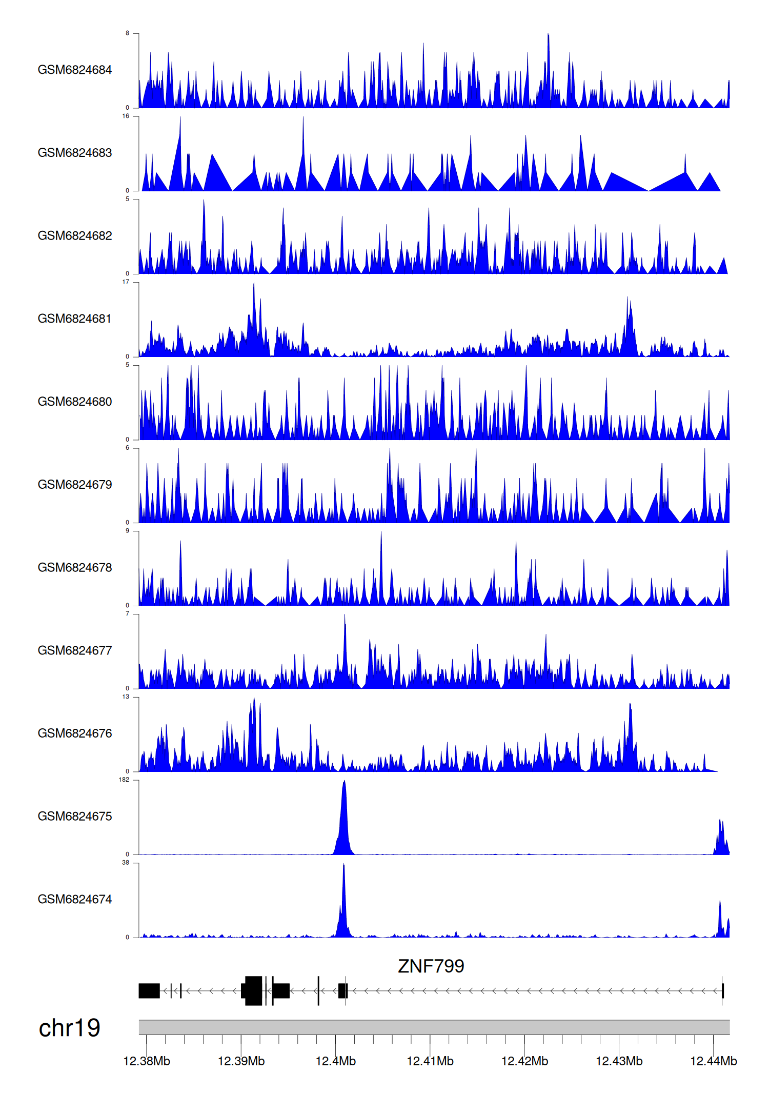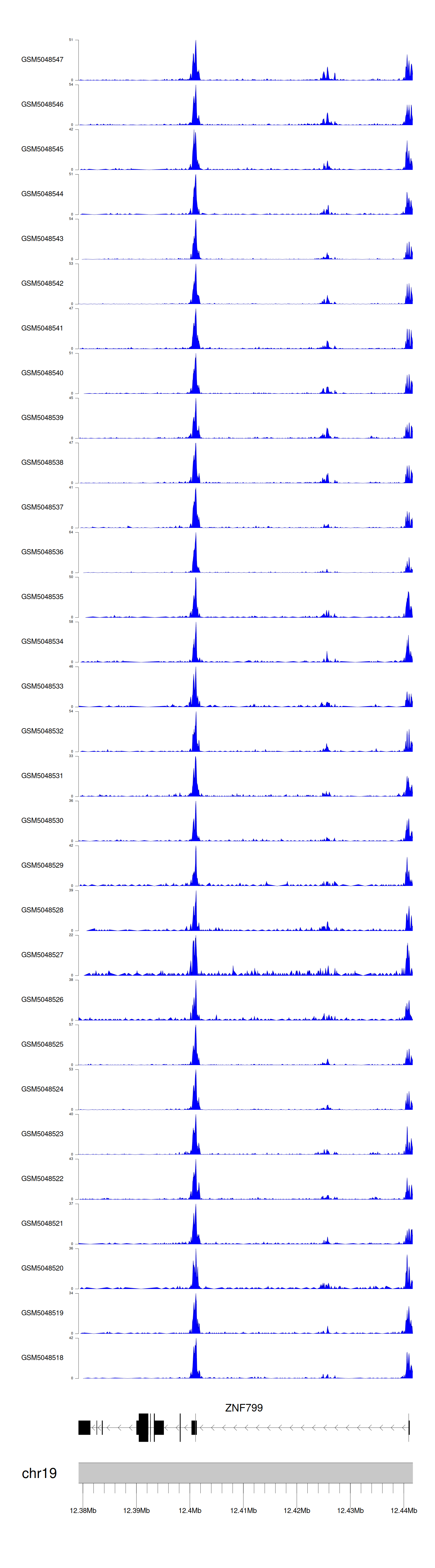 > Dataset: GSE144329 - ZNF799 peak across samples