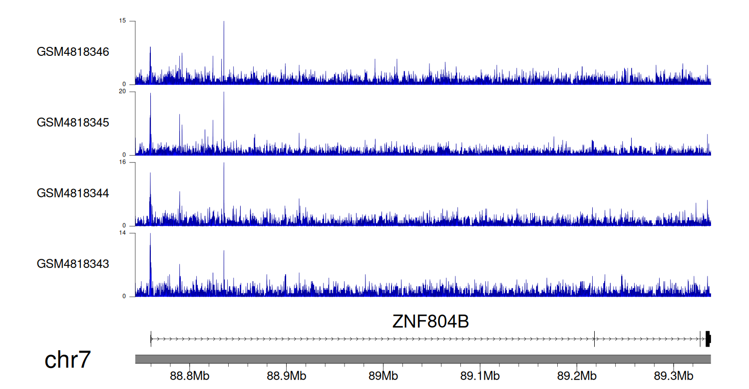 > Dataset: GSE270130 - ZNF804B peak across samples