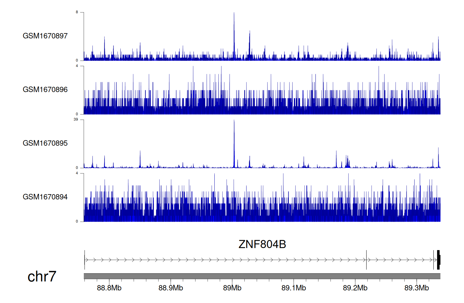 > Dataset: GSE68402 - ZNF804B peak across samples