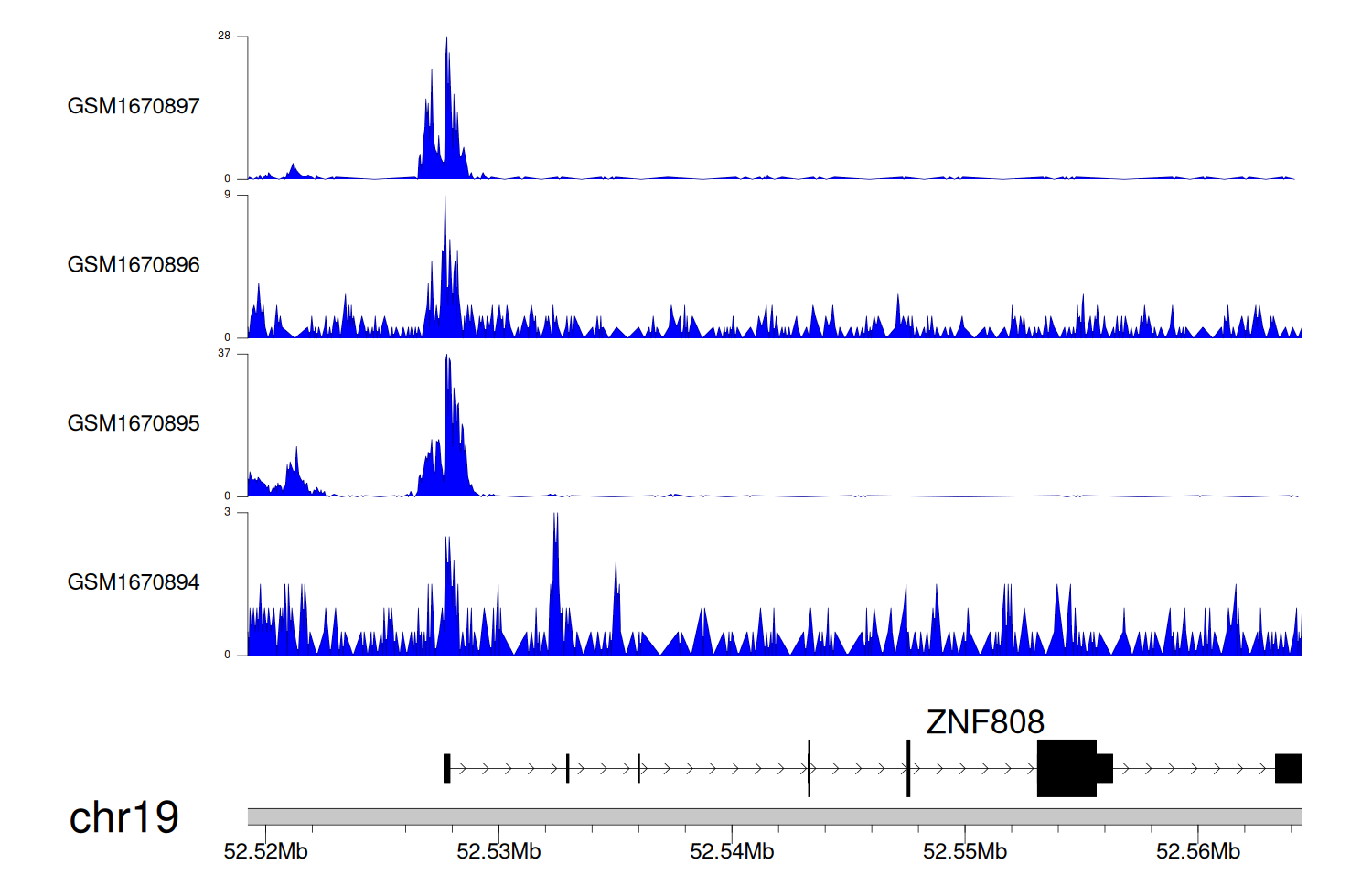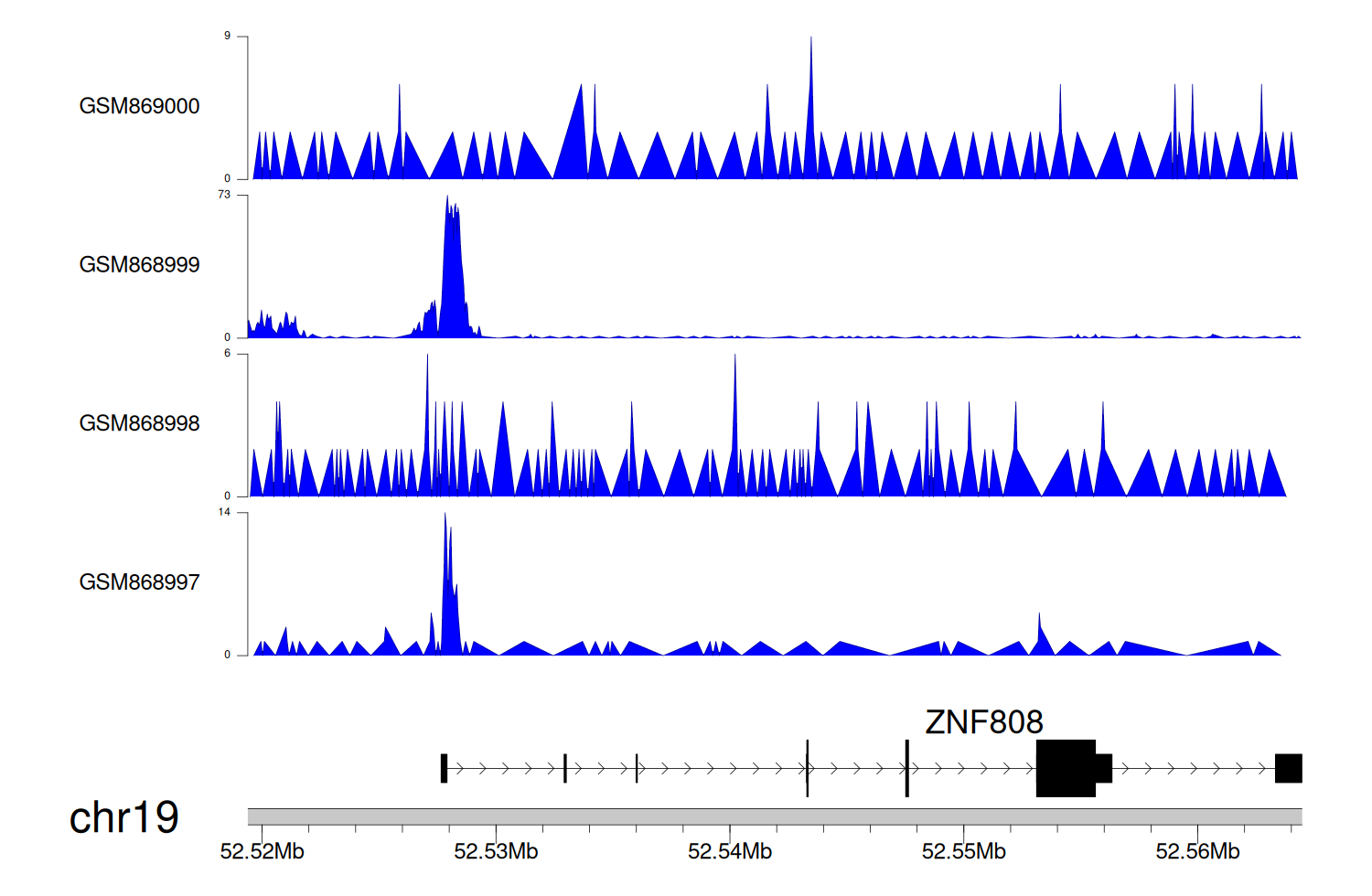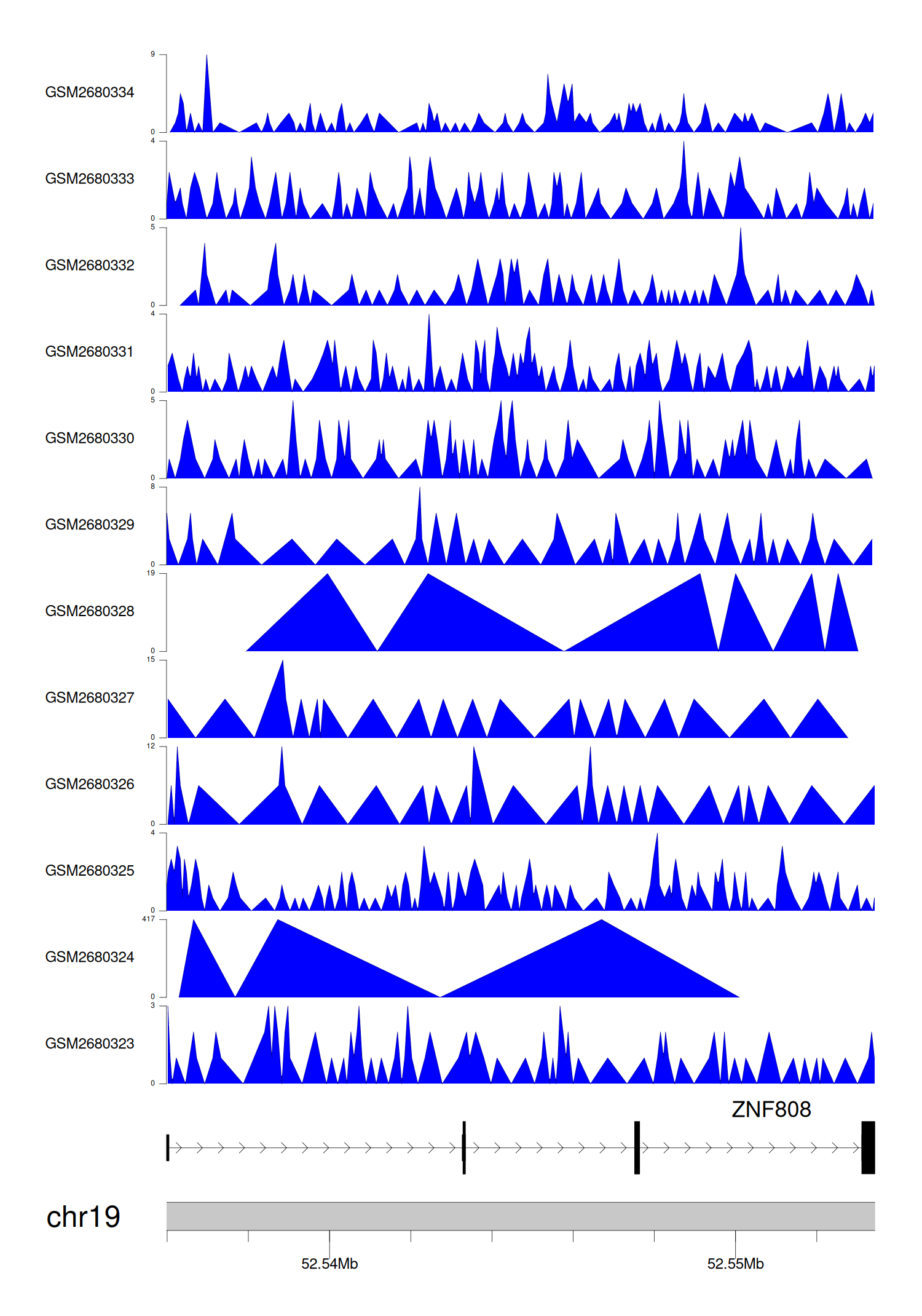 > Dataset: GSE68402 - ZNF808 peak across samples