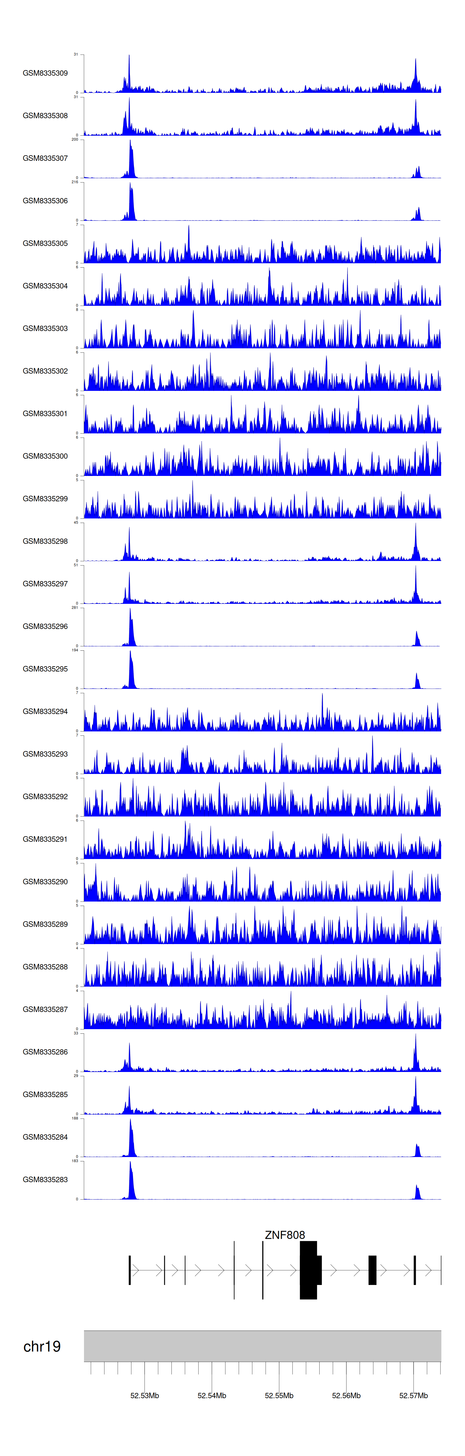 > Dataset: GSE270130 - ZNF808 peak across samples