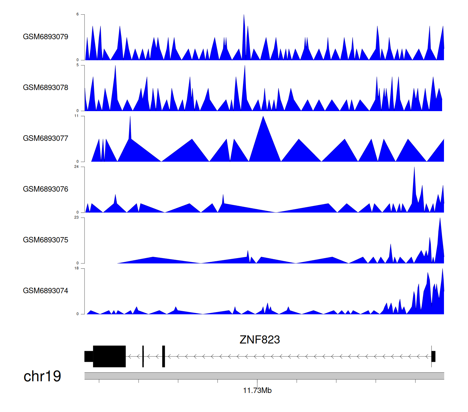 > Dataset: GSE165703 - ZNF823 peak across samples