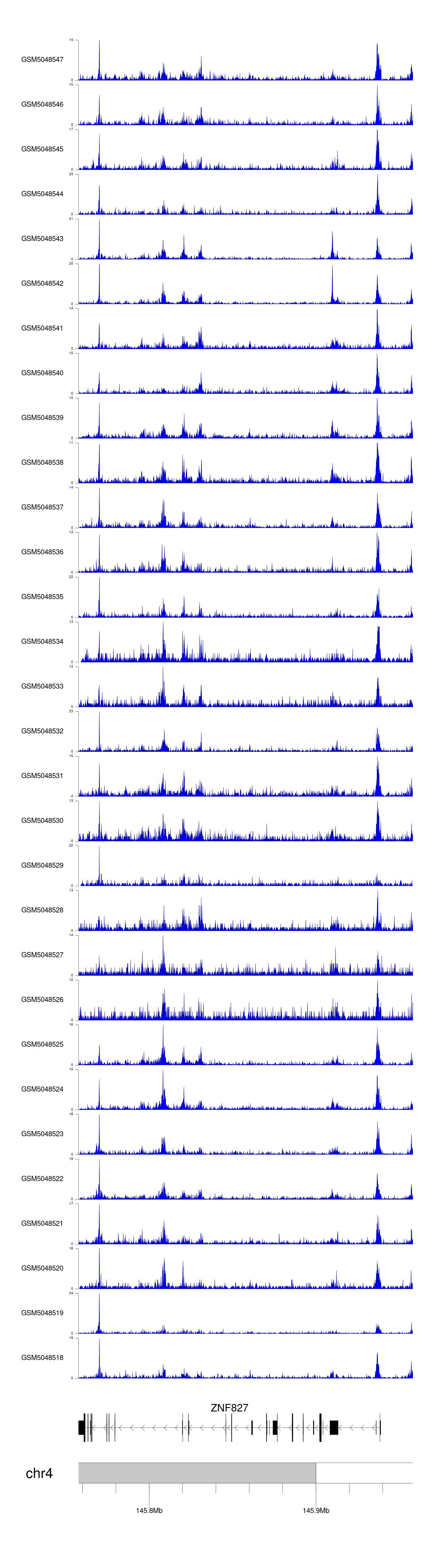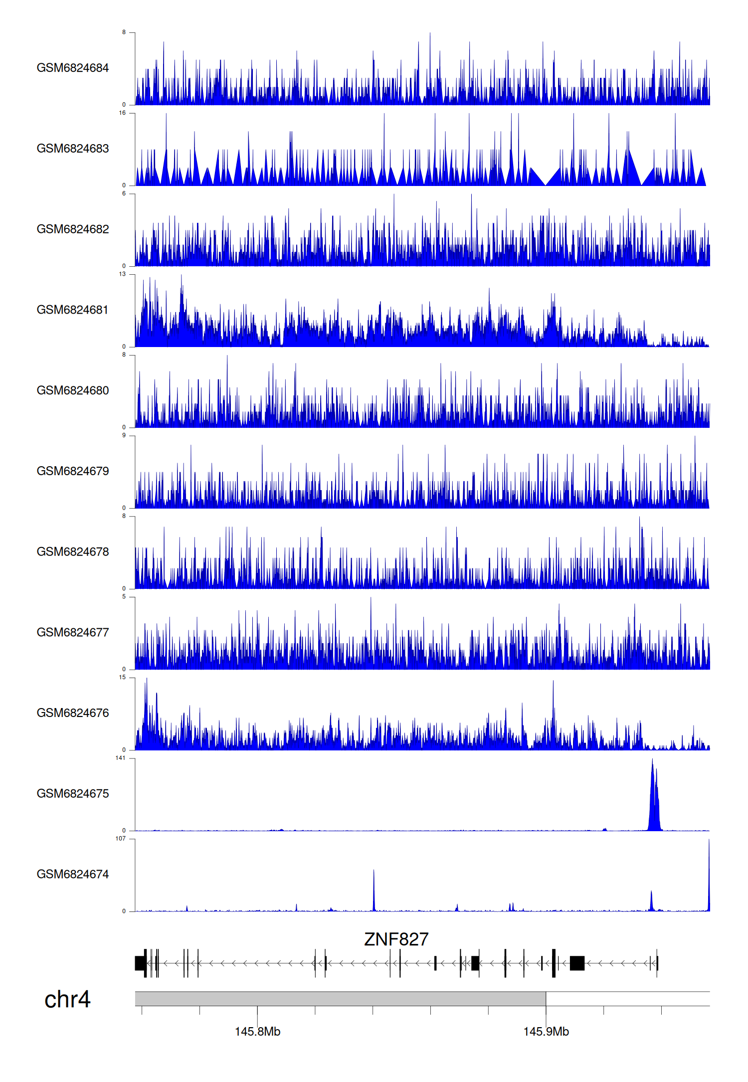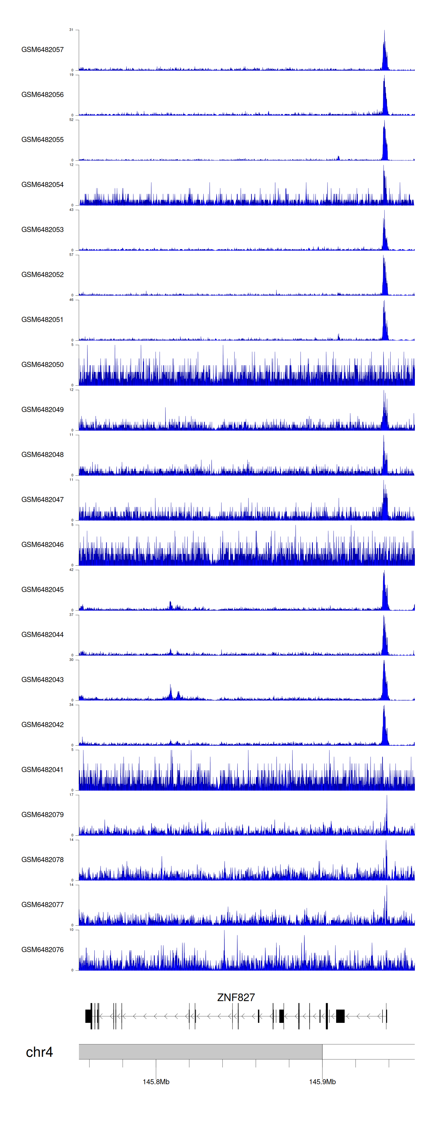 > Dataset: GSE144329 - ZNF827 peak across samples