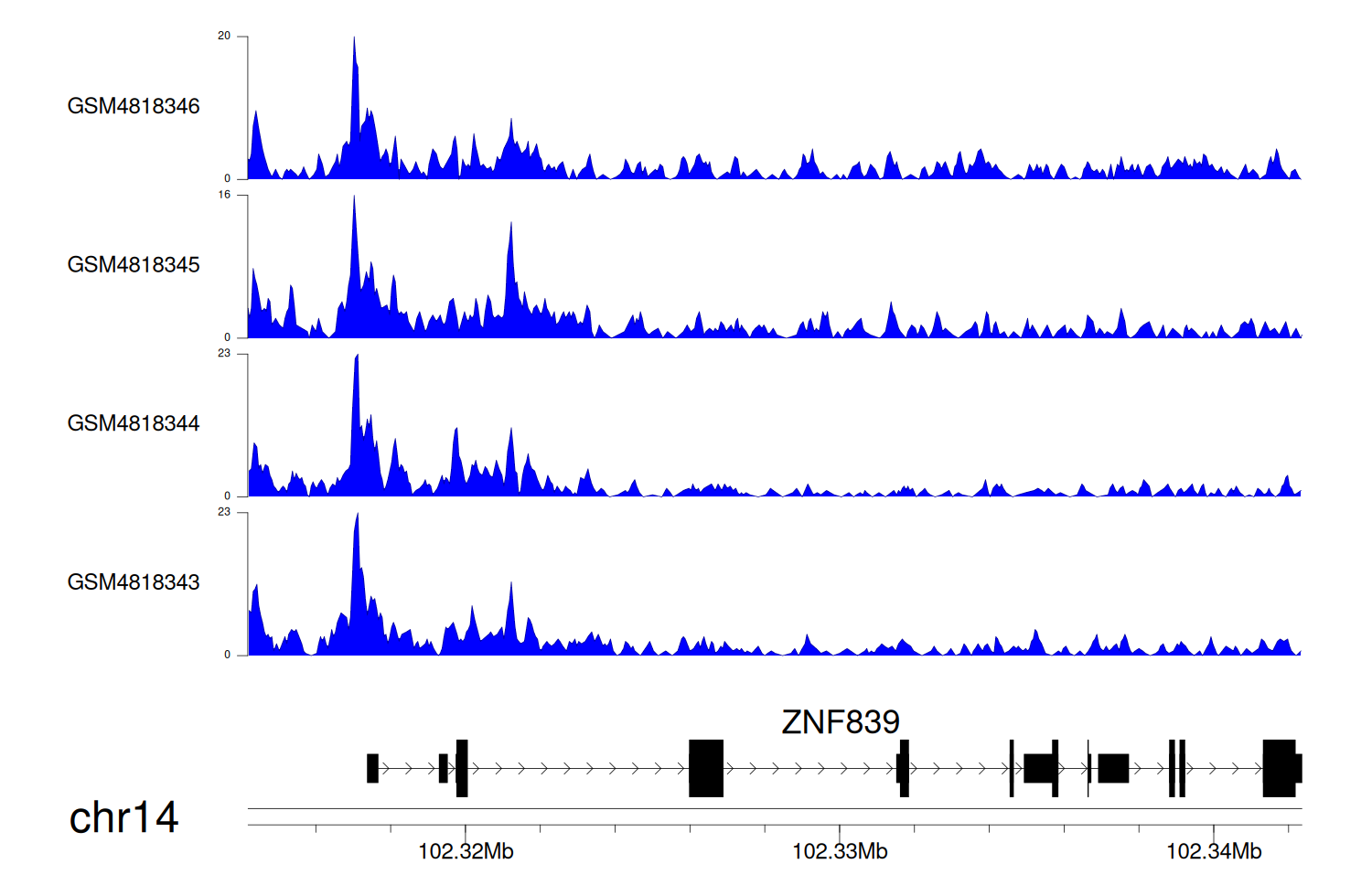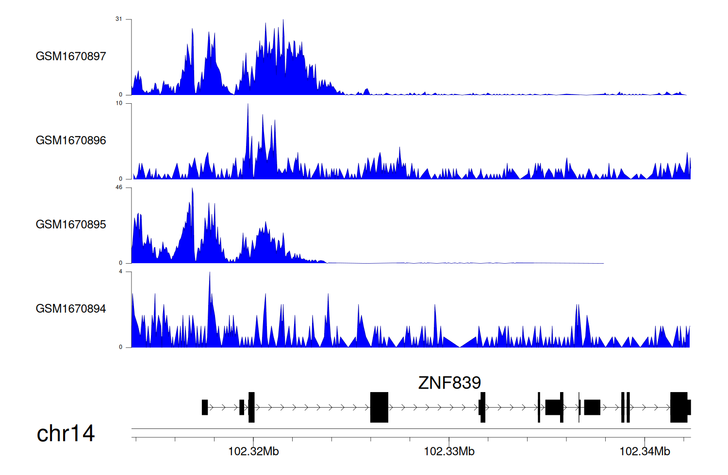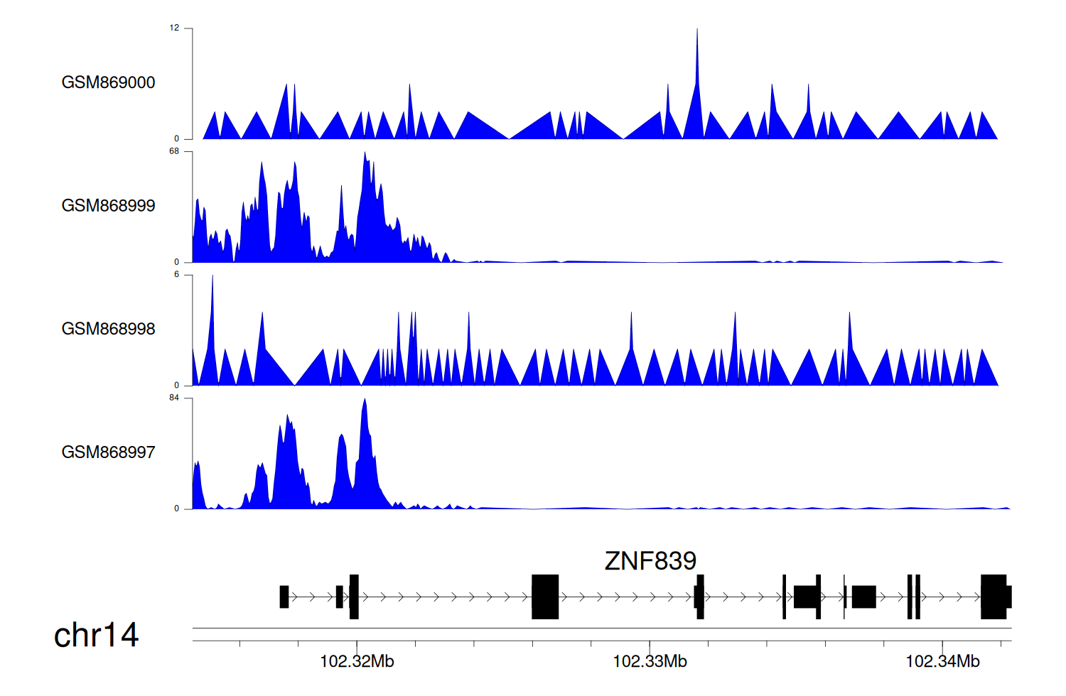 > Dataset: GSE68402 - ZNF839 peak across samples