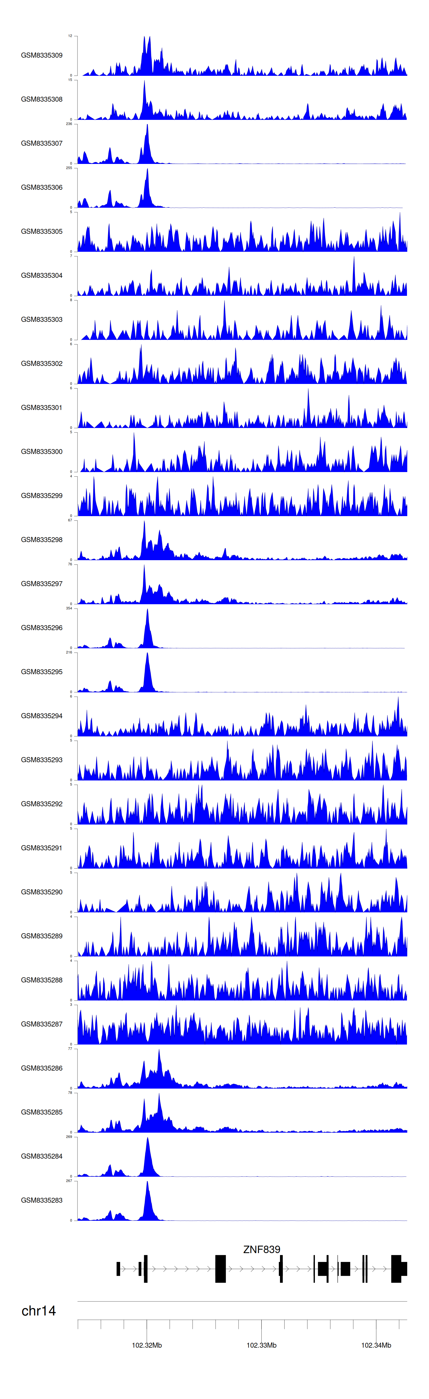 > Dataset: GSE270130 - ZNF839 peak across samples
