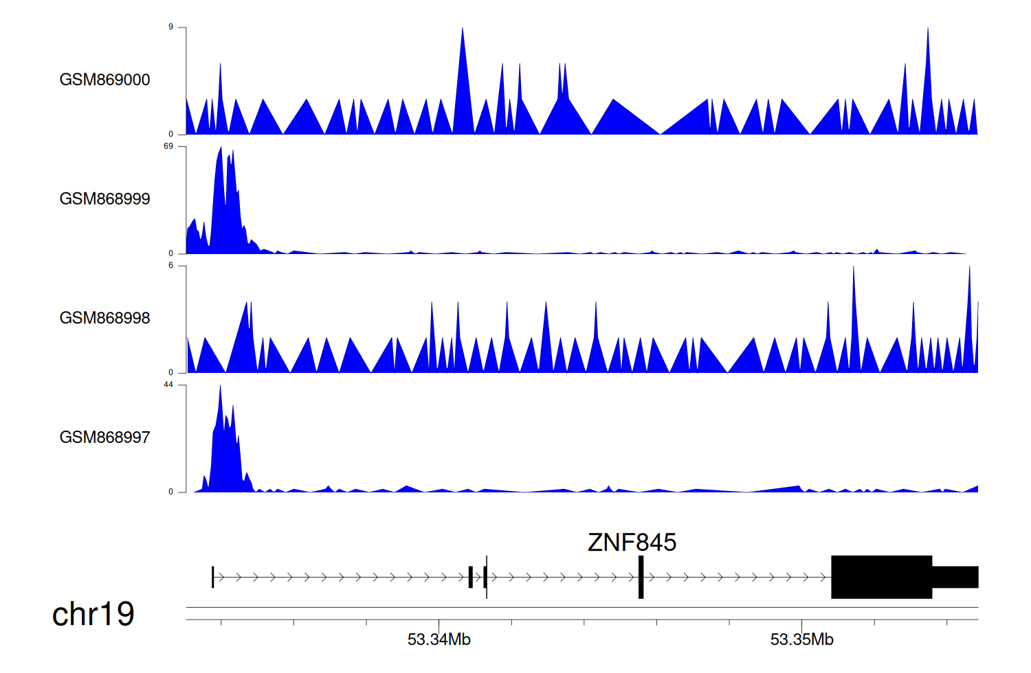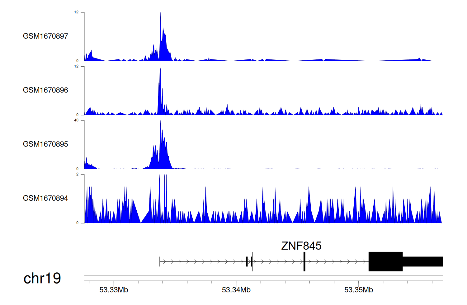 > Dataset: GSE68402 - ZNF845 peak across samples
