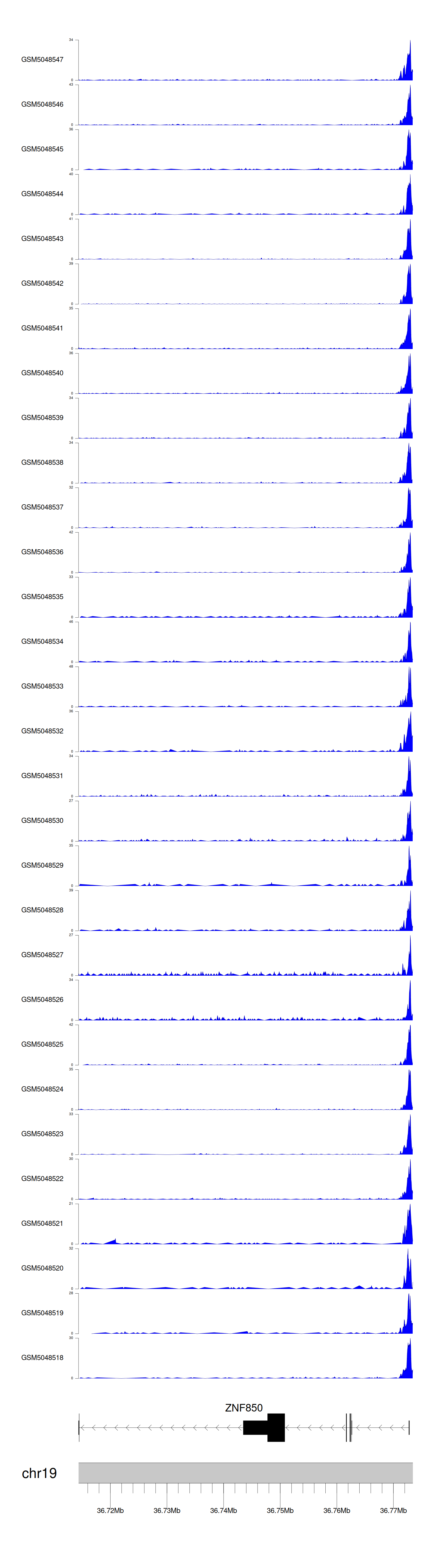 > Dataset: GSE100376 - ZNF850 peak across samples