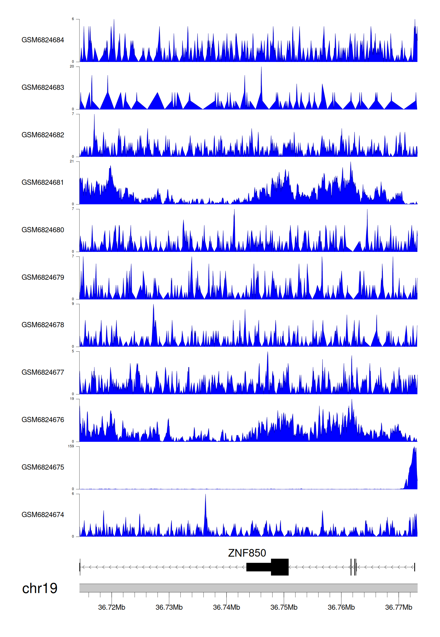 > Dataset: GSE165703 - ZNF850 peak across samples