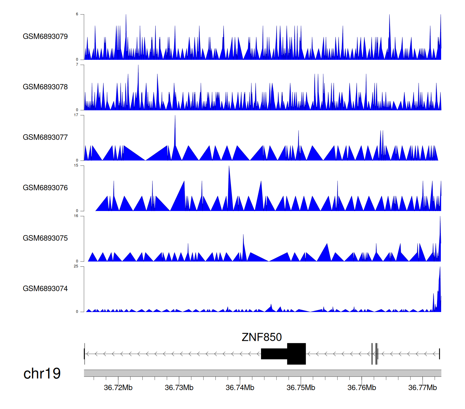 > Dataset: GSE211651 - ZNF850 peak across samples