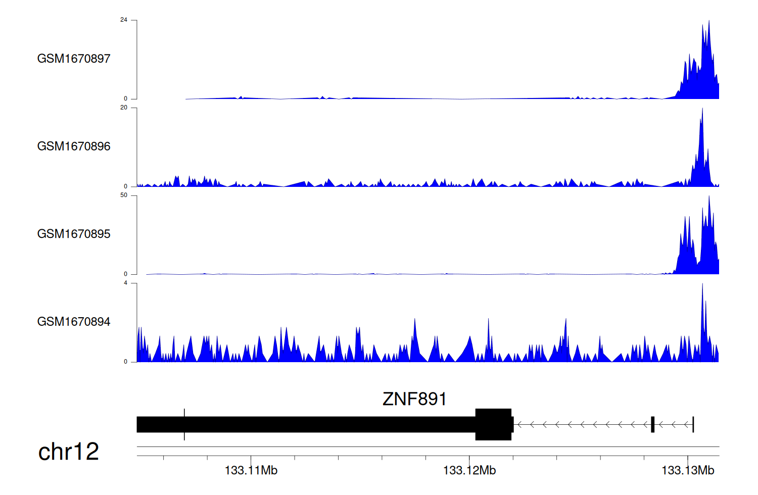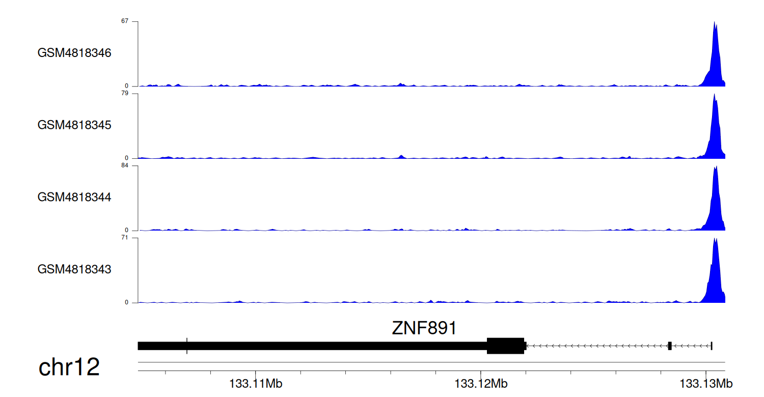 > Dataset: GSE131257 - ZNF891 peak across samples