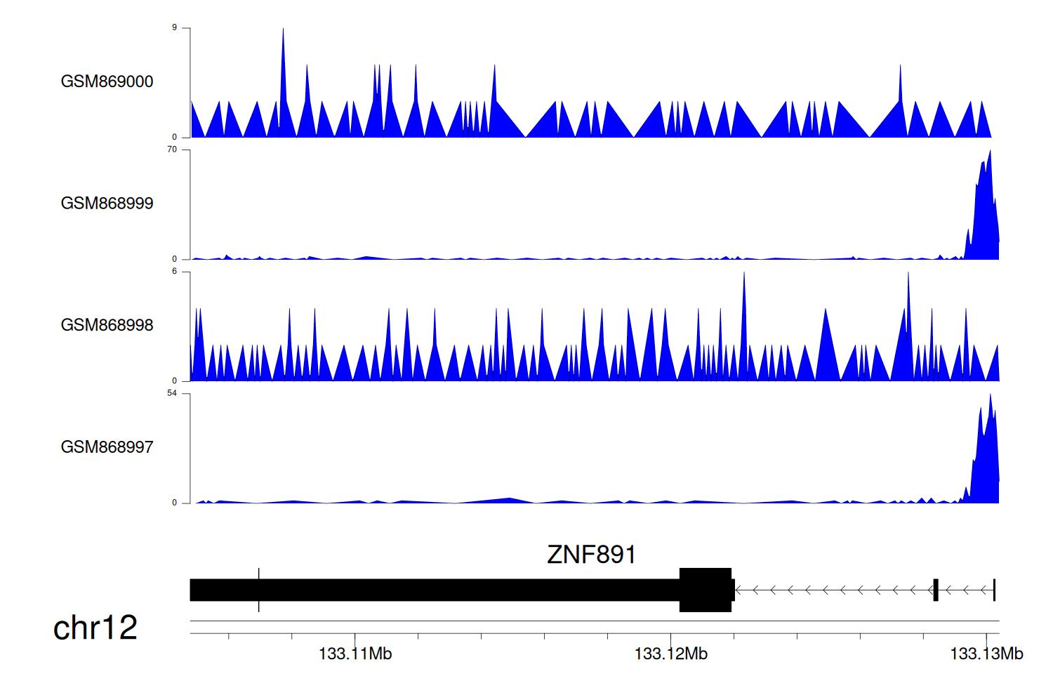 > Dataset: GSE68402 - ZNF891 peak across samples