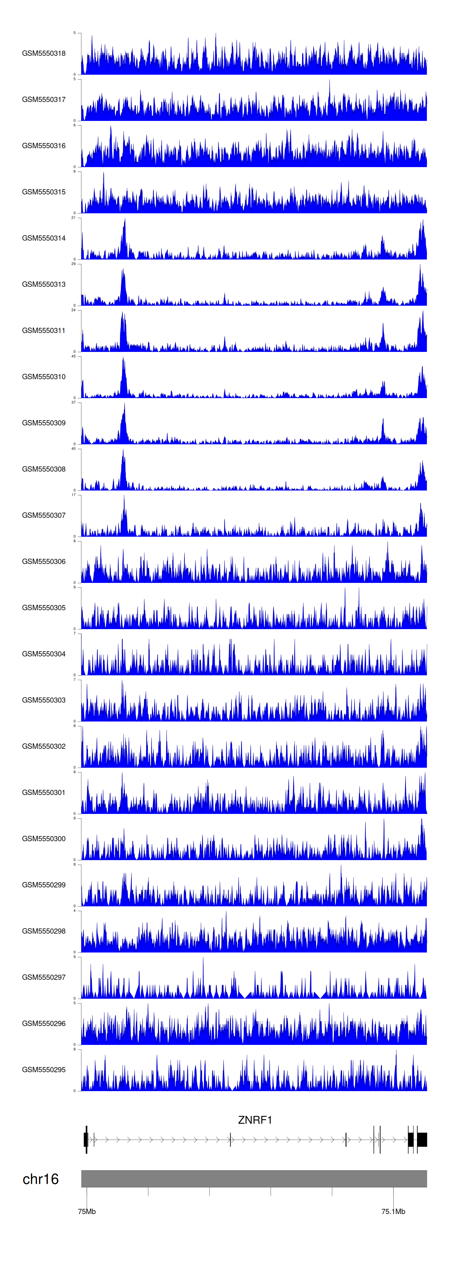 > Dataset: GSE143026 - ZNRF1 peak across samples