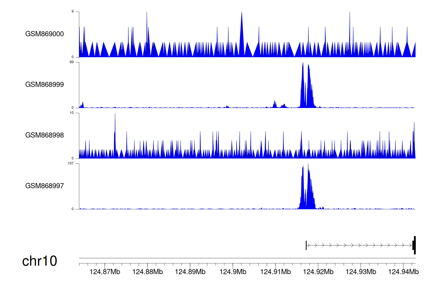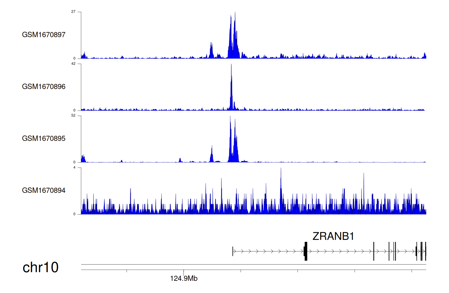 > Dataset: GSE68402 - ZRANB1 peak across samples